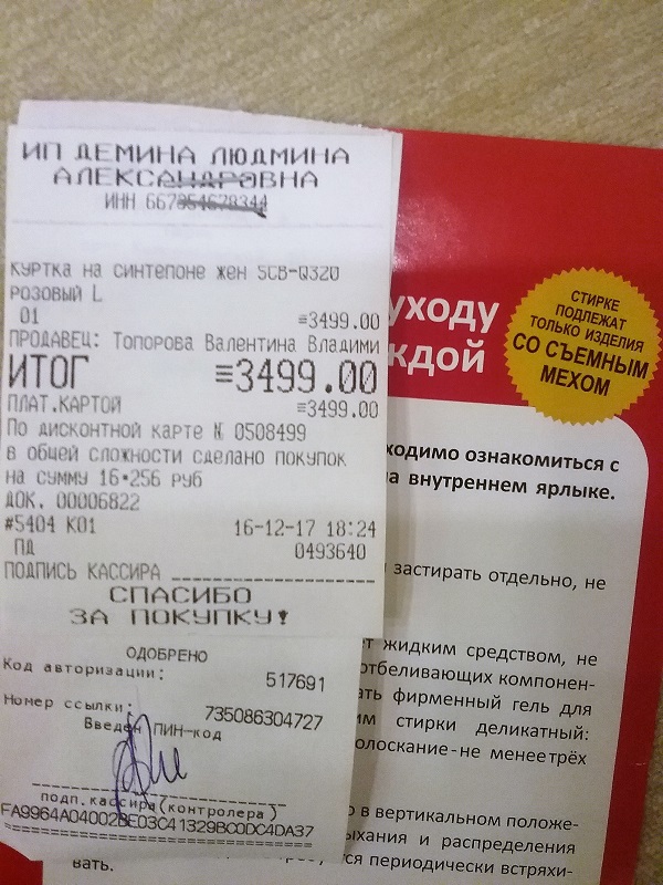 Ласка Опубликовано 16 декабря, 2017 Автор Опубликовано 16 декабря, 2017 Ещё вчера позденько заглянула Снегурочка Марина Примите Благодарность :bx: Итого: 8500 руб. Сегодня у меня на повестке пуховик в розовых тонах 44 р-р, и спортивный чёрный Адидас 44- р-р. На счёт Светы буду консультироваться с Галиной по телефону прямо на месте, в магазине.