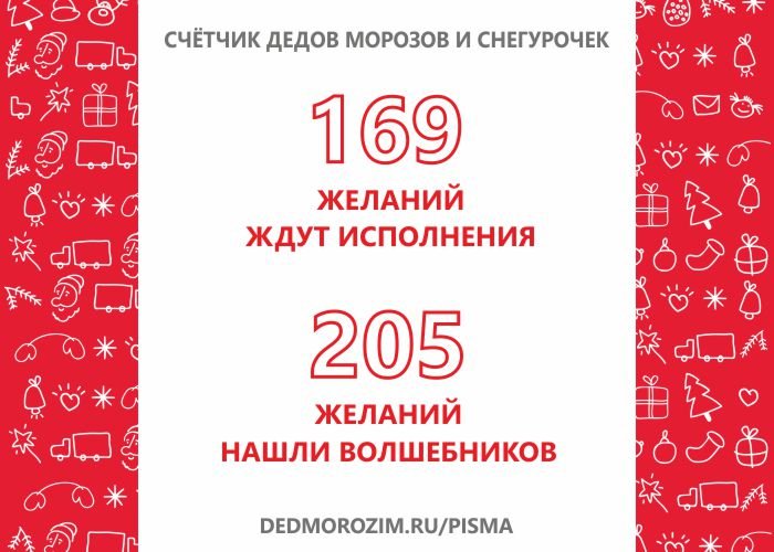 Ласка Опубликовано 14 декабря, 2017 Автор Опубликовано 14 декабря, 2017 Ааа, времени мало. Получила сообщение: Света, добрый вечер! Праздник в Березниках будет 25 декабря ( понедельник) Сегодня утром забегали ещё две снегурочки, оставили подарочки. Спасибо Снегурочке Лилии Благодарим Снегурочку Ольгу ИТОГО: 7500 руб. Расскажи всем Дедам Морозам! Общий сбор желаний уже в эти выходные! 16 и 17 декабря в библиотеке им. Пушкина на Петропавловской, 25 соберутся настоящие Деды Морозы и Снегурочки. Они придут туда, чтобы передать исполненные мечты ребятам в детские дома, приюты и больницы Пермского края. Обратите внимание, что сбор будет проходить на цокольном этаже библиотеки, вход с угла здания. Координаторы #дедморозим будут ждать вас с 10:00 до 18:00. Благодаря пермякам каждый ребёнок получит на Новый год не просто подарок, а свою исполненную мечту. В ваших силах дать таким ребятам и то, чего ему не хватает больше всего — частицу душевного тепла и личного внимания. Мы просим подписать мечту, указав на красиво оформленной коробке имя ребёнка и его учреждение. Также не лишним будет вложить в коробку с мечтой открытку или письмо. Напишите ребенку, чьё желание вы исполняете, о том, что считаете важным. Пожелайте успехов, расскажите новогоднюю историю или о себе, дайте жизненный совет — действуйте от души. Кстати, каждый, кто совершает новогоднее чудо, получит из рук координаторов «Дедморозим» оригинал письма, в котором ребёнок рассказывал о себе и своей мечте, а также небольшой ответный презент, подготовленный ребёнком в детском доме. Если у вас не получается передать исполненные желания в дни общего сбора, убедительно просим сообщить об этом по телефону горячей линии 270-08-70. Координаторы «Дедморозим» помогут в решении любой проблемы с доставкой желания, чтобы оно исполнилось точно в срок. Однако следует использовать этот вариант лишь в крайнем случае — ведь на общем сборе волонтёрам будет легче учесть все подарки и проще обеспечить порядок. Волшебство на этом не заканчивается! Вплоть до самого Нового года, 31 декабря, у Дедов Морозов есть возможность оплатить новогодние мечты — собранные средства пойдут на исполнение желаний ребят, для которых по какой-либо причине не нашлось Деда Мороза. Более 140 детских писем ещё ждут тех, кто станет Дедом Морозом и исполнит написанное в них! Я очень постараюсь в это воскресенье найти подарок и для Светы.