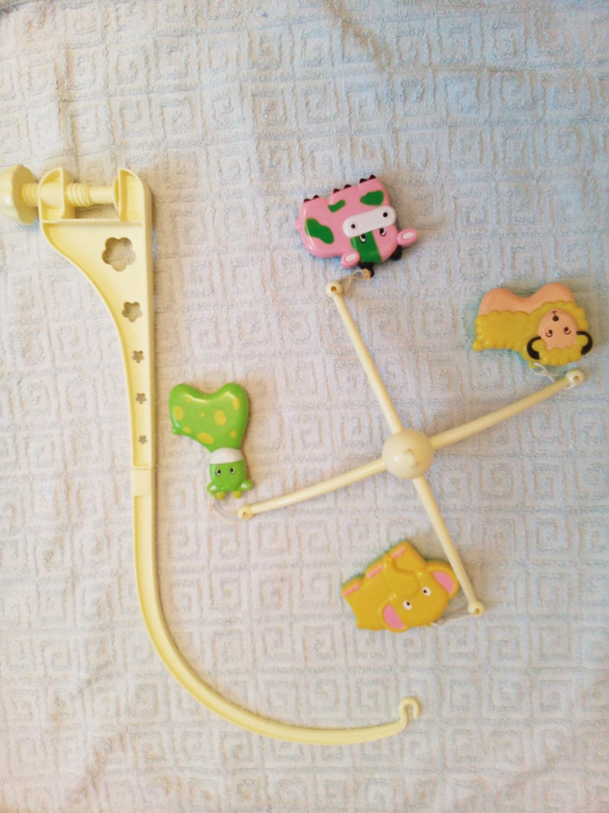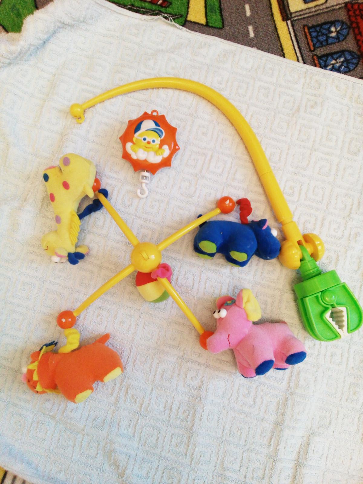 Чума Опубликовано 16 ноября, 2016 Опубликовано 16 ноября, 2016 Мобиль в отличном состоянии, есть упаковка. Мелодия приятная (не скрипит и не пищит), завод механический. Подвески мягкие игрушки-яркие с объемными элементами как раз для восприятия ляли. Есть второй мобиль (вращательный механизм сломан), но можно использовать для смены игрушек. На втором игрушки пластиковые погремушки, мы с ними потом просто играли и купались. Цена 350руб. Торг.