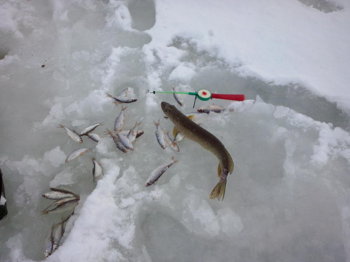 wiwarik Опубликовано 2 января, 2017 Опубликовано 2 января, 2017 Открывали сегодня сезон 2017 в Легино. Приехали втроем: я, "матроскин" и Лена-рыбачка. Дошли до реки - наледи по колено, троп почти нет, да и здоровья ходить далеко почти не осталось. В общем далеко не пошли, мин 20 прошагали и хватит.. Ловили плотвичку у левого берега. (оснастка на удочке, леска 0,12, мормышка снизу и небольшой отводной поводок с заглотышем на 2,5). Клевало не шатко не валко, в общем плохо и с перерывами. И вот в один из таких перерывов, когда на самолов сторожок не шевелился, я решил по примеру "матроскина", половить на "тряску". Стал поднимать ото дна с небольшими покачиваниями, как весной на леща. Одна проводка, вторая и вот на третьей проводке поклевка, да причем резкая, окуневая. Подсечка.... и неожиданная тяжесть почувствовалась в руке. Супер, подлещик клюнул, хороший (причем прецедент был недавно на предыдущей рыбалке у приятеля, когда клюнул подлещик гр.400). Начал тащить потихоньку, сопротивление лещевых потяжек, Классно... подлещик ... бонусом за мелкую плотву. Каково же было мое удивление когда в лунке показалась щучья морда. Крючок конечно тут же оборвался, но я все же успел среагировать и схватил ее под жабры в лунке. Секунда и 746гр. щука (взвесил уже дома) на льду. Ура! Такой приятный бонус за мелкую плотвичку за весь день, да причем столь неожиданный. В общем радости не предела, щука...леска 0,12...на ствольник... когда еще такое бывает. Приехав домой в красках все расписал жене, и решил тут же найти в пасти щуки крючок. Люди... такое бывает только раз в жизни... Крючка не было, но.... раскрыв пасть щуки зевником, обнаруживаем в ней... балансир! Щука обрывает балансир с леской, ну думаю не меньше 0,17 и попадается на 0,12. Вот, кому просто расскажи не поверят. Поэтому качестве доказательств фото, а так же рассказы "матроскина" и Лены-рыбачки. Вот такой вот Новогодний подарок! З.Ы. Кто узнал свой балансир, не обессудьте - присвоил себе. Головной крючок к сожалению сломал при попытке выпрямления.