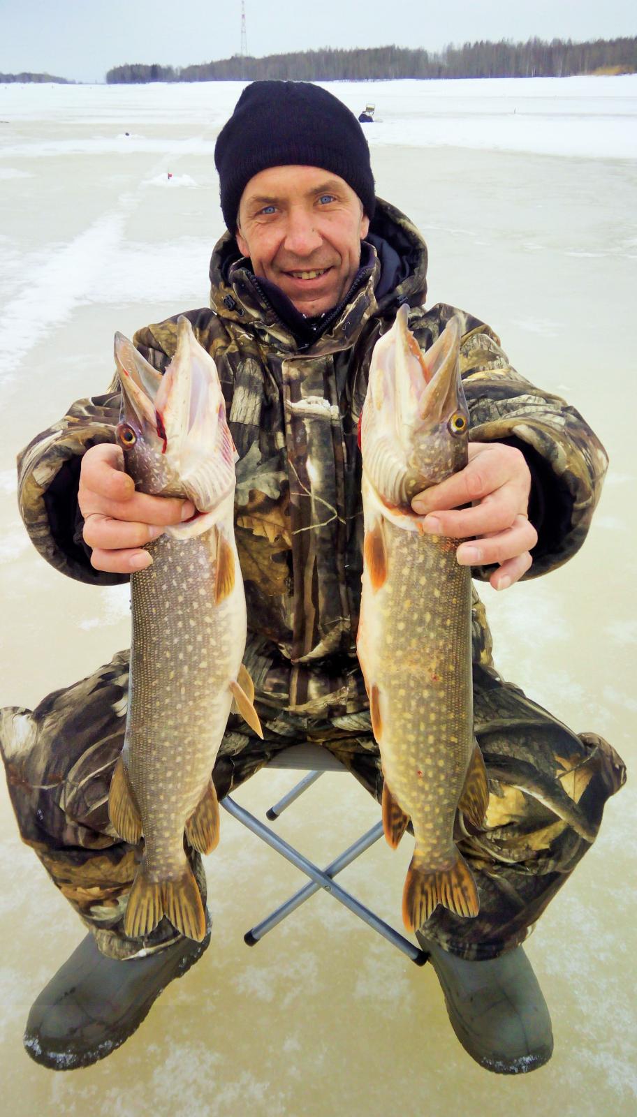 Студентт Опубликовано 22 апреля, 2017 Опубликовано 22 апреля, 2017 Всем привет! Чёт нынче с жерлицами почти не рыбачил. Решил вспомнить как оно делается. Ещё и погодка с заморозком и снегом подфартила, чтобы добраться на заветное лесное озеро. В общем с утра пораньше мы с товарищем уже в деревне. Товарища взял с собою, т.к. у него живцы были, а на озеро он очень хотел. Пока выгружали мотособаку из прицепа, от ближайшего дома подошёл Тюлькинский абориген. Говорит - буранка есть на озеро, только буран уже не проходит - валится, да и в лужах его лёд не держит. Но мы то не на снежике.... Наша то техника полегче будет. В общем 25 минут езды от посёлка и мы на месте. Глаза радуются - кроме нас на озере НиКоГо! копать можно вот столько: Расставляемся. у меня первая сработка поспешил и обидный сход. нно четась некрупное было вроде. Затем постепенно переставляюсь в более узкое место. Только поставил очередной автомат - как тут же бз-з-ззынь - это у меня бубенчики к флажкам приделаны, дабы сработку не только видеть, но и слышать - тут она как раз сработала когда я только от неё отвернулся. изловил веретёшку грамм на 600 подумал - да ну её нахрен такую рыбу - мелка будет, и утопил нещадно Пошёл переставлять дальше. На ходу вроде померещился очередной бзынь. Оглядываюсь. Не вижу дальнюю жерлицу, решил подойти поближе.- иду,Иду... ИДУ.... БЯгу бягу - горит флажок то. в момент когда подбежал жерлица уже пыталась упасть на лунку - слабая вся выбрана. подсекать не пришлось - рыб вовсю пытался утащить. в ответ на Пару рывков пришлось сдать лески. но вот всёж завел в лунку. Отковырял снег затемняющий и вот он. Леопард Лесного озера: Потом больше ничего не было. Ни сработок, ни рыб. Хотя упорно раскапывали с товарищем водоём в разных его акваториях и краях. погодка - как в сказке. в такую пору только и щукарить. - руки не мёрзнут. рожа сгореть пытается Товарищ видел за день около 10 сработок. Изловил одну щучку на 0,6 кг. Домой выбрались почти без приключений, опять же за те же 25 минут. Щука на взвешивании дома потянула на 3,45 кг. икры засолил по рецепту рекомендации от автора59. филе нафилячил. Жирную точку в сезоне можно считать что поставил. Всем НхНч!