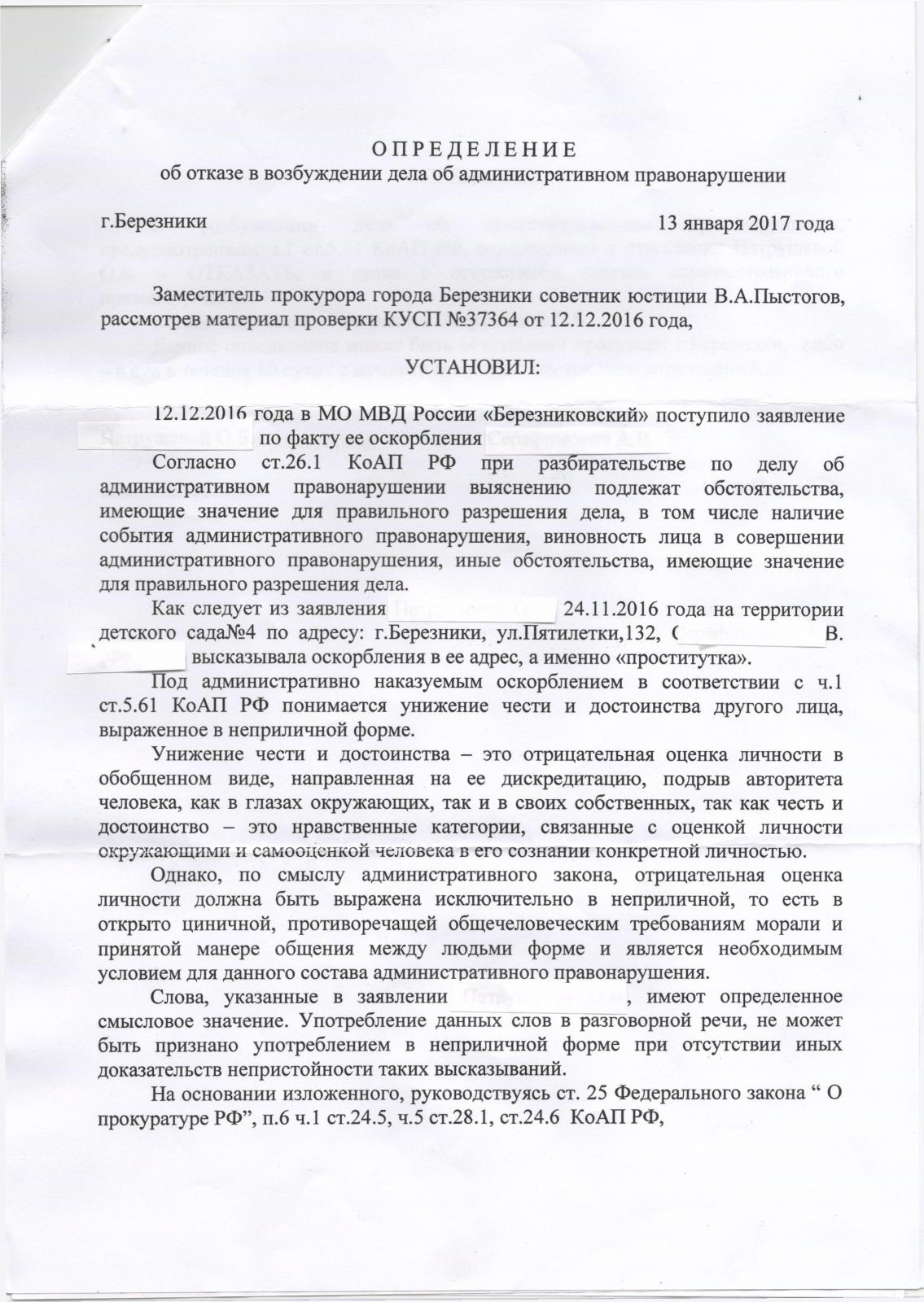avalan-1 Опубликовано 21 января, 2017 Опубликовано 21 января, 2017 Добрый день! Моя барышня работает воспитателем в детском саду и ее оскорбили в присутствии детей и родителей- это доказанный факт. Обращение в прокуратуру дало очень неожиданный результат. Согласно приложенному ответу, сейчас любой может оскорбить женщину без всякого для себя последствия. Не загрузилось начало документа.