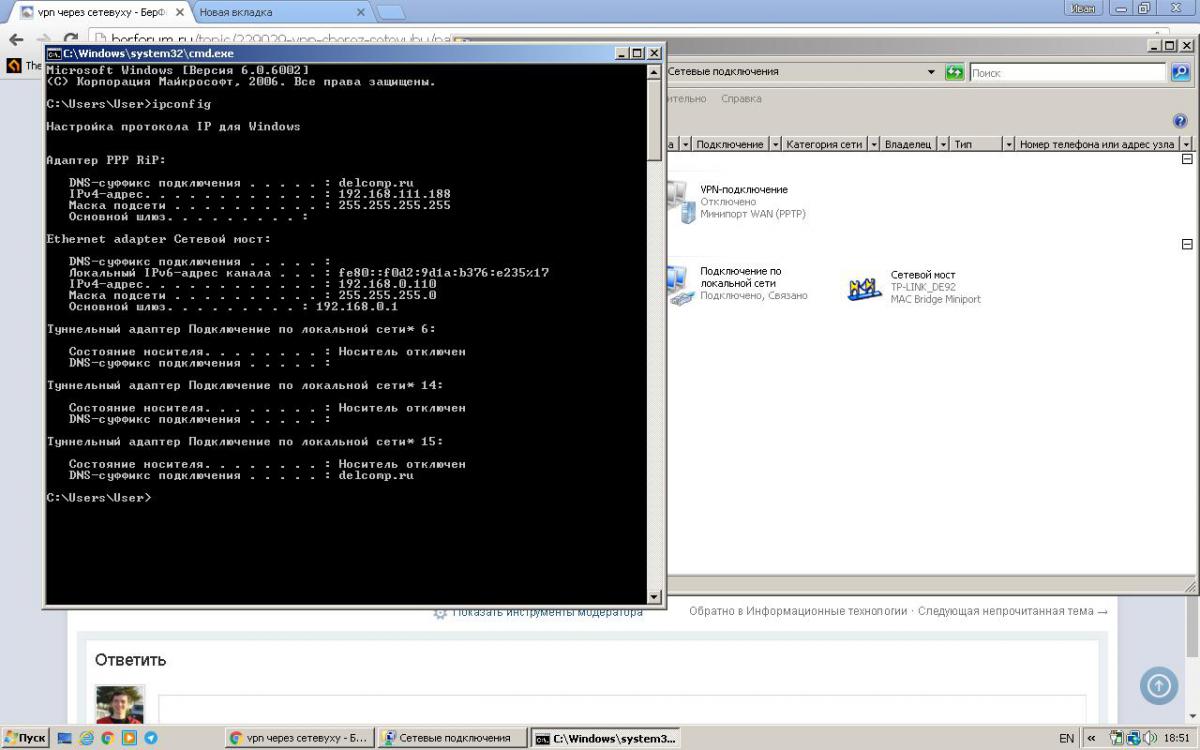 Kaf Опубликовано 9 марта, 2017 Автор Опубликовано 9 марта, 2017 а чего сетевуха получила, адреса какие ? Из твоей сети ? кинь айпиконфиг, поглядим чего и где там живёт так, стоять , туплю. Всё не так. У сетевухи должен стоять шлюзом айпишник который получает впн. Во. И ваще, а не проще на ноут поставить сип клиент ? Сип клиент можно, но с ним не смогу быстро и нормально работать. То есть мост между вафле и локалкой разрывать?