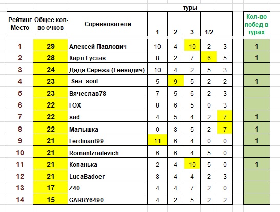 Победители тура - sad и Малышка. Итого 7 человек выигрывали тур.