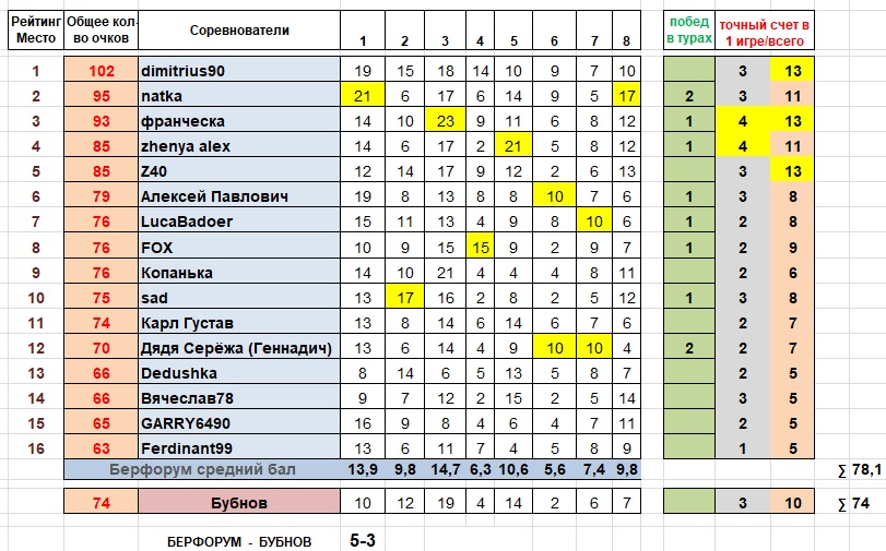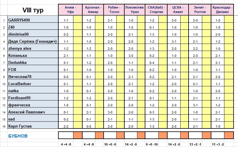 Мой прогноз на 8 тур. Дальше я вероятнее всего выпадаю из процесса. :eq: