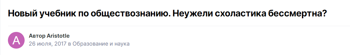 Adler Опубликовано 12 ноября, 2023 Опубликовано 12 ноября, 2023 (изменено) 8 часов назад, Каштанка сказал: Если ты устроился на работу в учебное заведение, то не мог не знать, что есть определённые правила и стандарты как самого обучения, так и обучающего материала. На что рассчитывал? Это система, которую невозможно изменить никаким учебником, даже если он был бы гениальным. В образовательной системе, в совокупности людей, программ, зданий, органов управления, экономики и прочее, обучение должно быть стандартизировано, иначе государственность зашатается. Конечно, такая молекула как твой учебник, причём он же не идёт вразрез с общепринятыми у нас нормами, никак не повлияет на развитие нации. Но если в каждом ОУ будет разрешено каждому преподу учить как он считает нужным по тому материалу, который он свободно выбирает, то система непременно начнёт давать сбои. Не ты один недоволен некоторыми аспектами нынешней системы образования. Но и всё разрушать нельзя. В целом наша школа даёт качественное образование. Со стороны выглядит, что ты как та рыба, которая совершенно зря бьётся об лёд. Смирись. Система тебе не даст себя разрушать. Любой здравомыслящий человек давно ответил на вопрос, заданный тобой ещё 5 лет назад: "Да. Схоластика бессмертна". Ведь схоластика - это пустые споры, это бессмысленные рассуждения о том, что не поверить, это беспредметные разговоры. Их полно каждый день и в телеке, и в нашей жизни. Здесь полтора землекопа, которые уже сто лет назад всё выучили и всё знают не хуже тебя. Дальше этих страниц твои наработки не распространятся. Ну, в семье вечерком за чашкой чая посмеются-пообсуждают что там в очередной раз накропал Стариков. И всё. Через минуту все забыли кто ты и что там написал для нашего всеобщего блага. Живём здесь и сейчас, довольствуемся тем, что есть. У нас ведь уже прожиты немалые годы. А желание достичь всеобщего блага для себя или для людей где-то там и когда-то тогда нужно оставить молодым. У нас по конституции есть свобода преподавания. Я имею право использовать кроме учебника дополнительные источники в рамках учебной программы и в рамках стандартов. Особенно , если эти работы написаны авторитетными классиками социологии. Если Боголюбов назвал фамилию классика социологии, но не сумел изложить содержание его теории, то я имею право изложить сущность работы этого классика социологии. Если ты имеешь низкую квалификацию, то можешь преподавать строго по учебнику, непригодному для преподавания. Это твоё право. Ходи оплёванной учениками, которым неинтересен этот учебник. Я использовал работы классиков социологии, а не преподавал какую-нибудь ересь о перерождении душ, как Михеева из строительного техникума. Вот поэтому я и не пошёл по официальному пути, они бы меня укатали как Сивку крутыми горками. Я тогда в 1977 году обратился к методисту из ГОРОНО Кузьминых с черновиком своего учебника, она отправила меня в Пермь в институт повышения квалификации к Чарной Нине Петровне, последняя подобрала мне научного рецензента - Лейбовича Олега Леонидовича, он дал положительную рецензию. Затем Усольское районо отказалось давать мне деньги на издание. Шехматов и Талайко отказались давать мне деньги на издание. Я нашёл спонсора, своего родственника - Горюнова Владимира Ивановича. Я издавал свой учебник в Соликамском пединституте, д