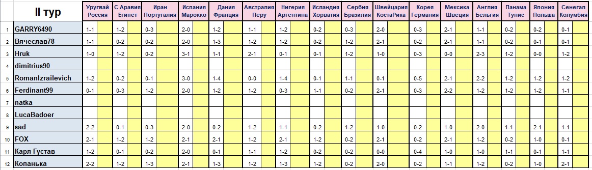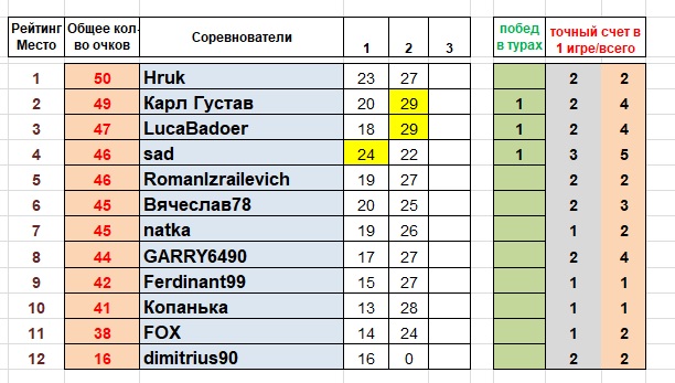 RomanIzrailevich Опубликовано 25 июня, 2018 Автор Опубликовано 25 июня, 2018 Итоги после 2х туров Победу во 2м туре одержали Карл Густав и LucaBadoer. так держать! Вся борьба впереди) проверяйте. Прогноз на 3й тур