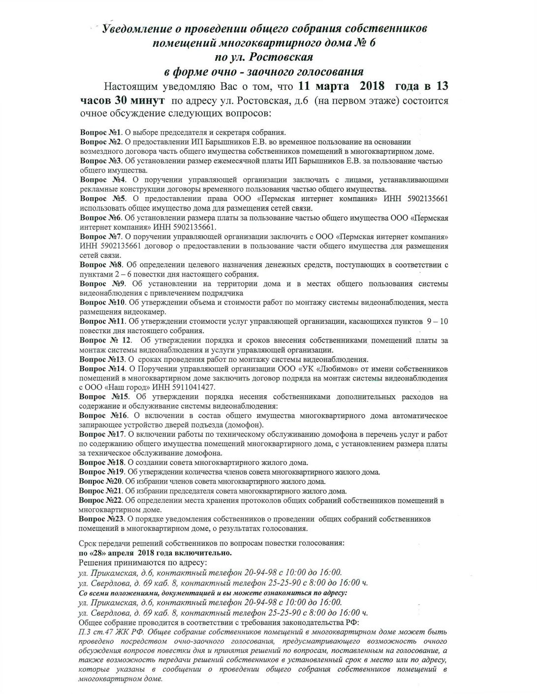 Ук Перспектива Опубликовано 6 марта, 2018 Опубликовано 6 марта, 2018 Объявление на двух листах. На втором есть и информация и координаты. обычная повестка для голосования по доп.услугам,не входящим в состав обязательных,так сказать "хотелки". Составлена грамотно и подробно,только нужно учесть ,что кворум по многим вопросам в этой повестке должен составлять не менее 2/3 голосов.