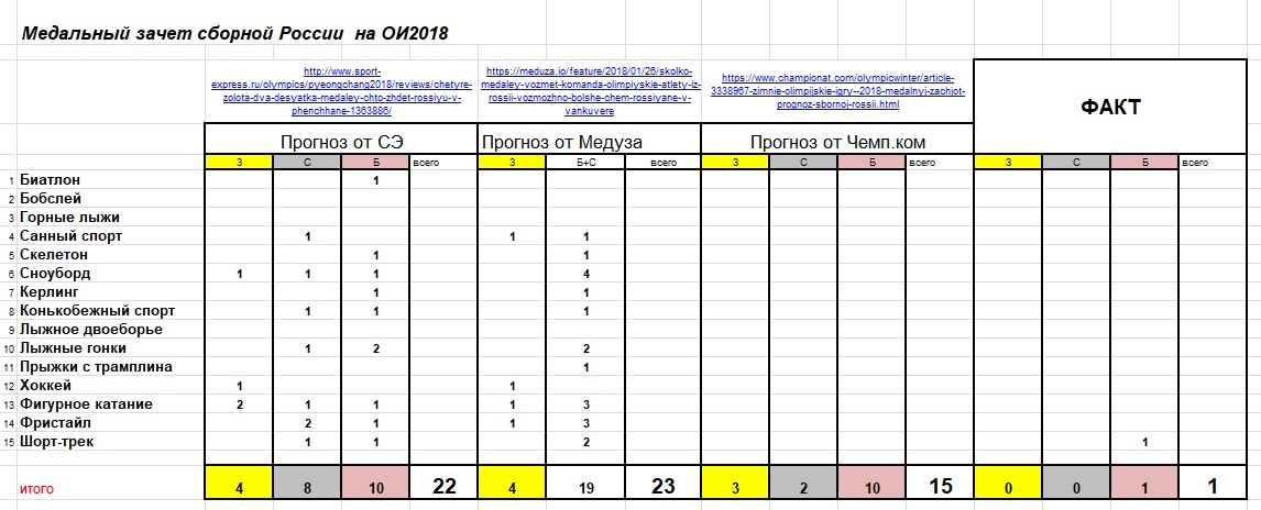 Вот несколько разных прогнозов на медальный зачет нашей сборной на ОИ18.