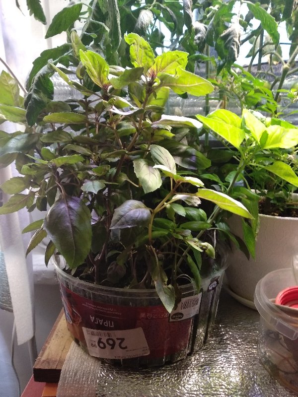 Д. Руми Опубликовано 3 января, 2020 Автор Опубликовано 3 января, 2020 А вообще базилик лучше сажать в большие ёмкости. Крышки от тортов идеальны, заполняешь питательным грунтом, штук 7 туда пикируешь и он растет без всяких хлопот. Света надо относительно немного. Но место должно быть теплое. Он как змей Горыныч, голову отрубаешь, на её месте 2 растут. На фото ему уже месяца два. Я уж и песто делаю из зимнего базилика. Летом он в открытом грунте у меня вообще не рос, а зимой - сколько угодно.