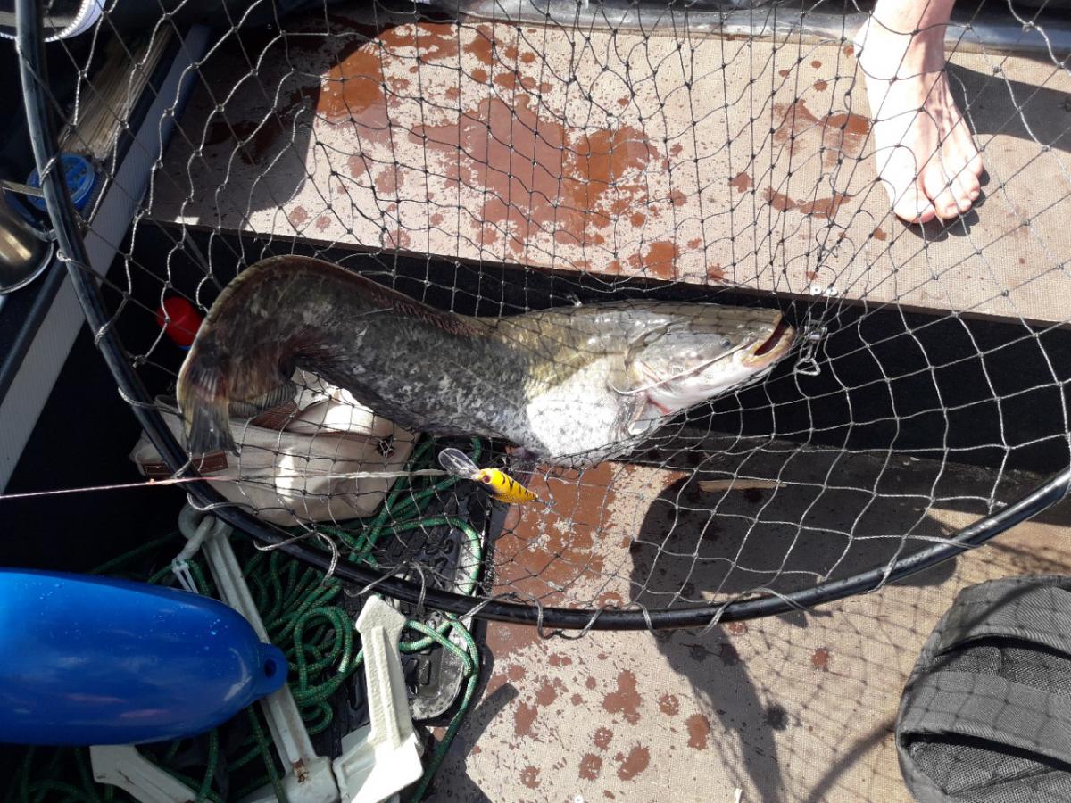 Бурый Опубликовано 10 июля, 2018 Опубликовано 10 июля, 2018 В выходные сьездили в Бондюг. Вода упала на 1,5 метра за 2 недели. Там где в прошлый раз ставили резинки и клевало всё, сейчас совсем мелко. И рыба ушла. Но на спиннинг рыбка поклевывает. Из интересного, поймал щуку под трешку и судака на три с лишним, и обе рыбы покусанные поперек туловища. На фото видно укус. На месте укуса чешуя содрана, а рисунок перенесён на голую шкуру.