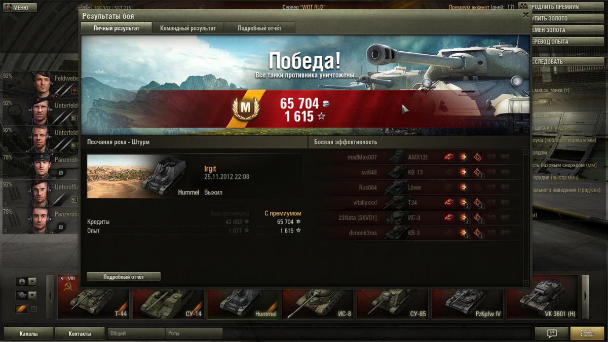 cyber Опубликовано 30 ноября, 2012 Опубликовано 30 ноября, 2012 Впервые за 11000 боев поиграл в ротах(чемпионки). Так классно! Столько адреналина! На ИС3 был 51%(101 бой), стало 58% (135 боев). (27-0-4). Только нужно очень внимательно выбирать командира, а то там такие собирают. Ребят, если кто знает нормальных командиров на RU2 пишите имена, и время когда играют. Я играл с pobatt,очень рекомендую, он играет с 16-00 до 20-00 по мск.