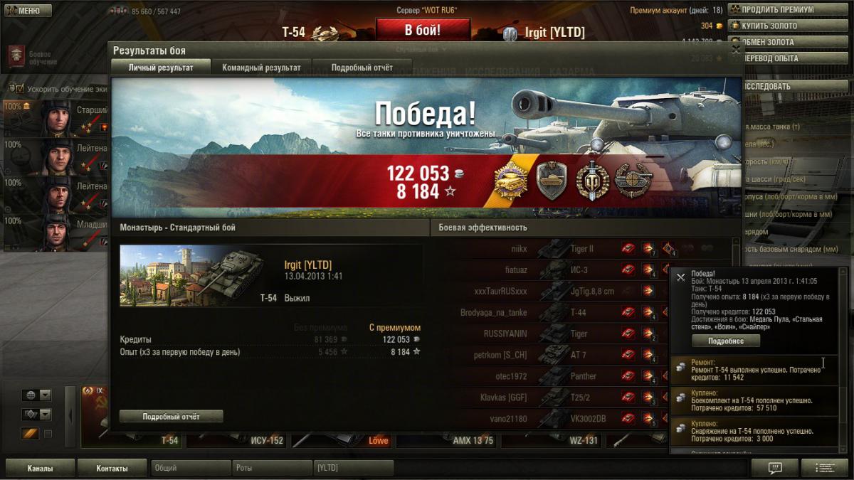 nikas Опубликовано 15 апреля, 2013 Опубликовано 15 апреля, 2013 Привет всем танкистам! Подскажите реально ли продать акк за 6000р? Ник в игре ninelka.В ангаре 29 танков. Тяжи : Ис7,Ис-4,Ис-8,Ст-1,Е-75,ТАПОК,Е-100,МАУС,М-103,Т-110е5,CONCUEROR,WZ-110,Т-34прем. Средние танки: Е-50, М-46Паттон, Батчат, Comet, Type-59. ПТ: Объект-704, Фердинанд, Ягдтигр, Т-28, Т-95, Т-110Е4, АТ-15. Арта: Объект-212, Гв-пантера,М-12. Многие ветки вкачаны от начала до конца. Все танки в топ комплектации с модулями. Перки вкачаны в зависимости от техники от 1 до 3,5.