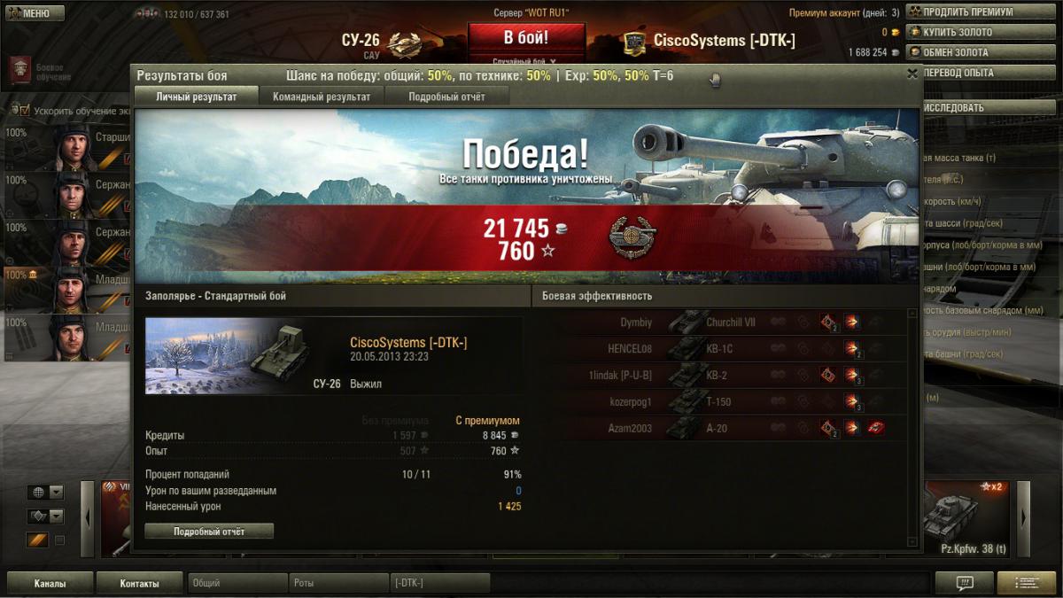 Stan Опубликовано 29 мая, 2013 Опубликовано 29 мая, 2013 Чем больше играю на Т-54, тем больше он мне нравится. Победа! Бой: Эрленберг 30 мая 2013 г. 0:51:14 Танк: Т-54 Получено опыта: 1 791 Получено кредитов: 70 642 Достижения в бою: Медаль Бруно, «Воин», «Спартанец»