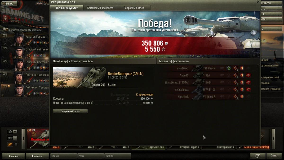 cyber Опубликовано 7 августа, 2013 Опубликовано 7 августа, 2013 40 боев, 32,5% побед. Господи, ну почему все олени вчера были у меня в команде. Щас посмотрел. 33 боя и 45.5% побед. Заходишь в бой, а XVM показывает союзников красным. Вы на каких серверах играете? И в какое время по Москве? У меня: вчера 33 боя: 20 побед 12 поражений 1 ничья. позавчера 39 боев: 23 победы 13 поражений 3 ничьи. Правда почти все бои во взводе, те что не во взводе - те на высадке: 5 побед и 1 поражение. Пару недель назад, в пятницу, играл в роте (чемпионской) 40 боев - 37 побед 2 поражения 1 ничья. В итоге перекос по % побед на технике. На ИС3 66% на КВ4 50%, Бат 25т 57% а ИС4 48%.
