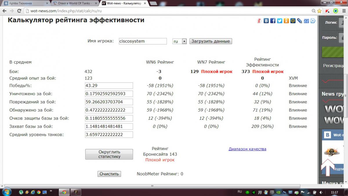 gazmaster Опубликовано 5 сентября, 2013 Опубликовано 5 сентября, 2013 я тут смотрю http://wot-news.com/...stat/calc/ru/ru Саня, ник твой забыл...этот? :lol: буковку "s" в конце забыл :lol: