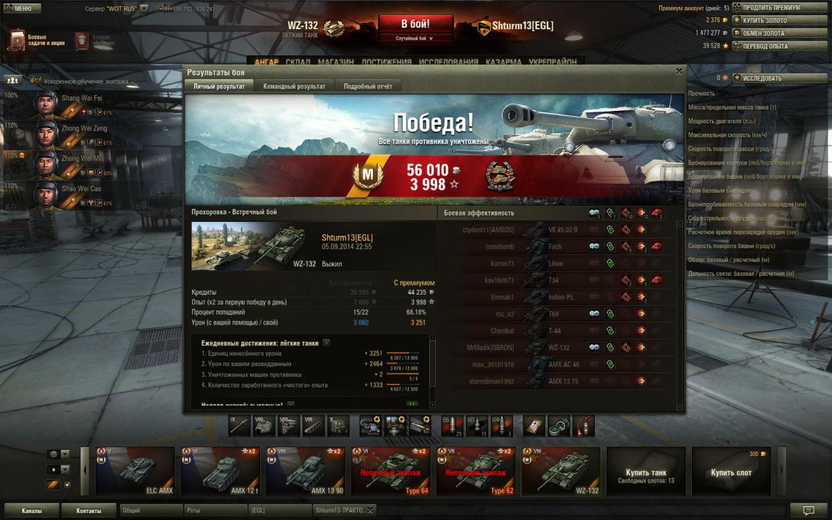 Stinger13 Опубликовано 5 сентября, 2014 Опубликовано 5 сентября, 2014 Победа! Бой: Прохоровка Техника: WZ-132 Получено: (X 2) 5 997 56 010 Награды и Достижения: «Поддержка»; Знак классности «Мастер» http://wotreplays.ru...shturm13-wz-132 Не веришь в урон союзников по твоему засвету? Стреляй сам :)