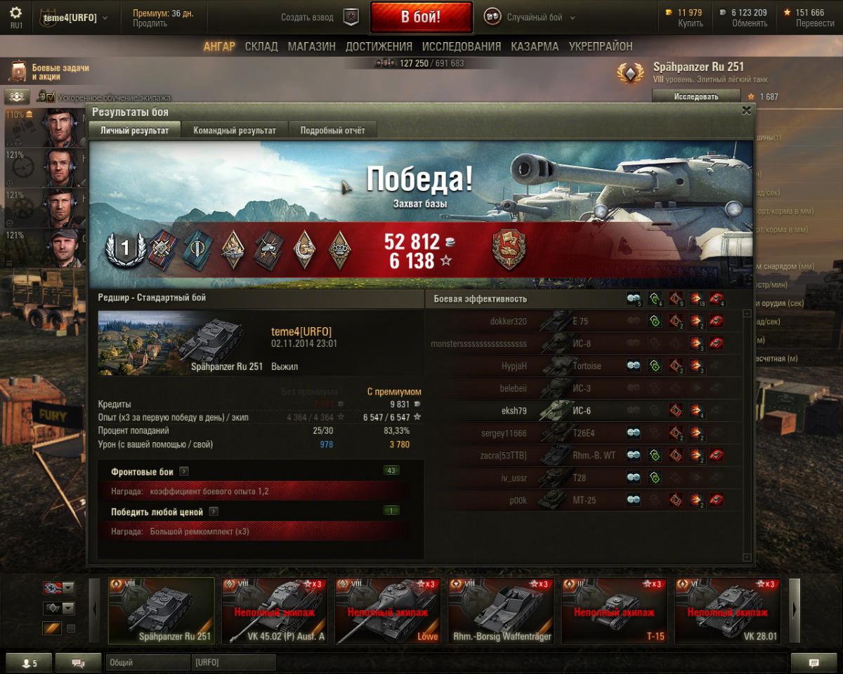 for Опубликовано 2 ноября, 2014 Опубликовано 2 ноября, 2014 16 ноября отборочные в Перми. http://cyberstadium....world-of-tanks/ Если кто надумает ехать, сел бы нахвост ). Собирайте команду парни, формат будет новый 7\54. Это типа КБ, только танки от 6-8 лвл РУ251 Мужики может возьмет кто твинка моего на компанию, желательно березниковскии клан, есть 3 32 50100 90, ну и так не на компанию, просто в компании земляков покататься.