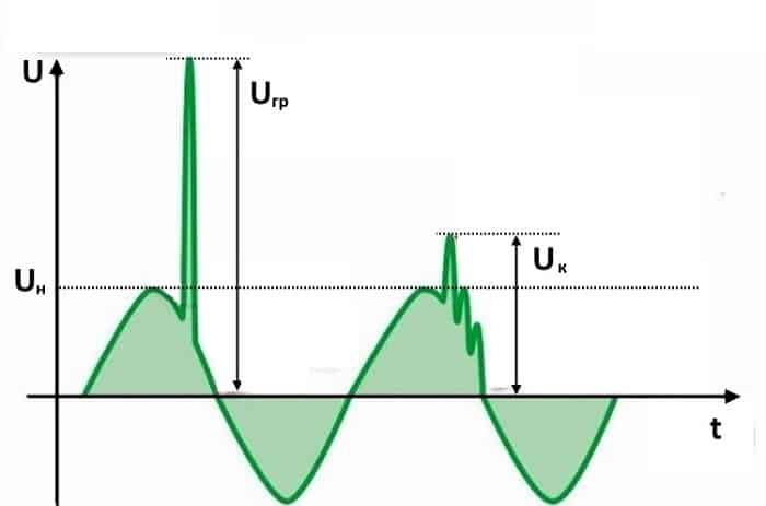 Z40 Опубликовано 7 апреля, 2018 Опубликовано 7 апреля, 2018 Собственно, если поумничать, то от вчерашнего скачка никакие вышеописанные приборы не спасут, быстродействия не хватит. Они только от обрыва ноля. Я так понимаю, был мощный импульсный скачок приличной амплитуды, типа как на рисунке. Время срабатывания всех этих защит в районе 0,1 сек. Переменка у нас 50 герц, т.е 50 раз в секунду через ноль переходит. Желающие могут подсчитать время импульса. ЗЫ. Вообще, защита от импульсных помех вопрос мутный. По идее их на подстанции должны гасить всякие конденсаторные установки.