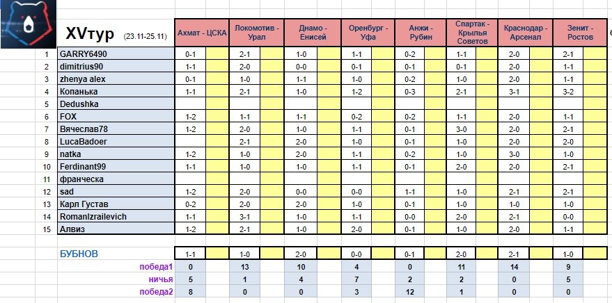 natka Опубликовано 25 ноября, 2018 Опубликовано 25 ноября, 2018 ну что же) ещё немного, ещё чуть-чуть...и Новый год) а в туре победил...Карл Густав!!! он теперь лидер Браво!!!! но ничего...преследователи очень близко)) у меня опять больше всего точных счётов и мы победили Бубнова!!!! 16 тур начинается 30 ноября, последний тур 2018 года начнется 8 декабря...нас ждёт 2019! ох!