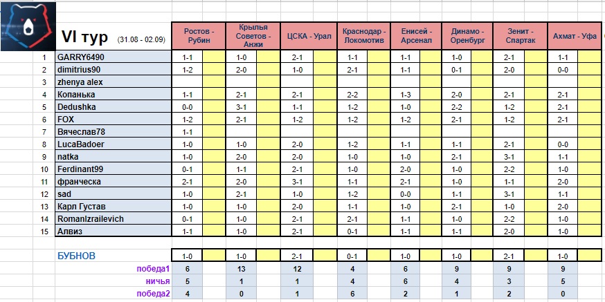 RomanIzrailevich Опубликовано 31 августа, 2018 Опубликовано 31 августа, 2018 Прогноз на 6й тур Вячеслав78 пока один матч. И ЖеняАлекс где то опаздывает...
