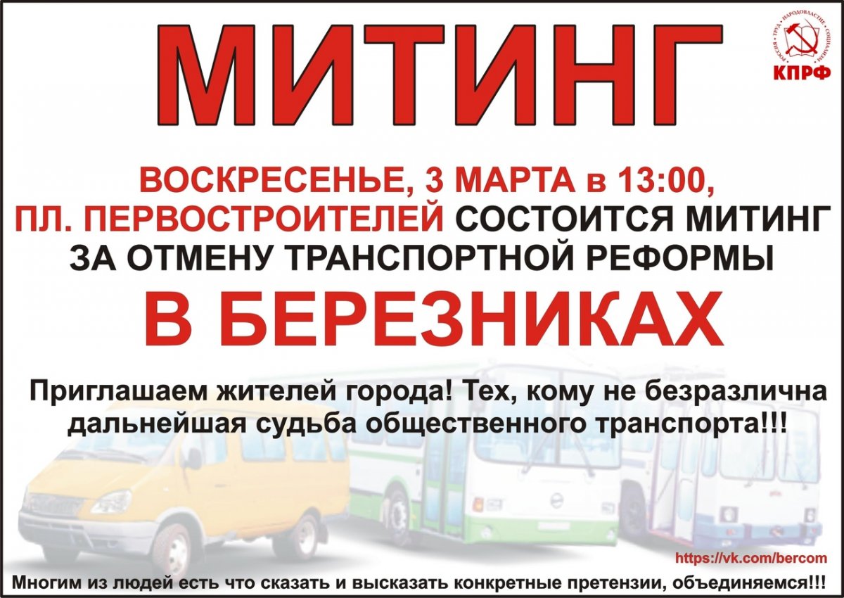 RomanIzrailevich Опубликовано 23 июля, 2019 Опубликовано 23 июля, 2019 В 07.06.2019 в 20:53, RomanIzrailevich сказал(а) : продолжение? В администрации города началась подготовка проекта нормативного акта (постановления) об изменении документа планирования регулярных перевозок по муниципальным маршрутам общественного транспорта. Извещение о начале работы по проекту постановления размещено на сайте администрации города в разделе «Экономика/ Оценка регулирующего воздействия». После публикации текста документа в течение 10 рабочих дней пройдут публичные консультации, которые предполагают сбор мнений и предложений по проекту постановления всех заинтересованных лиц. Информация о результатах рассмотрения предложений будет также размещена на сайте администрации города. ГА Видимо подготовка окончена. нГГ в вк В БЕРЕЗНИКАХ РАЗРАБОТАНА НОВАЯ МАРШРУТНАЯ СЕТЬ ДЛЯ ОБЩЕСТВЕННОГО ТРАНСПОРТАВ прошлую пятницу, 19 июля, на сайте городской администрации появилось извещение о проведении публичных консультаций по проекту документа планирования регулярных перевозок по муниципальным маршрутам регулярных перевозок пассажиров.Это означает, что мэрия разработала проект новой маршрутной сети для автобусов и троллейбусов.Городская администрация также сообщает, что обсуждения проекта будут проходить в форме публичных консультаций. Предложения (замечания) участников публичных консультаций принимаются ТОЛЬКО ПО АДРЕСУ ЭЛЕКТРОННОЙ ПОЧТЫ: petrakov_v@berezniki.perm.ru.Разработчик документа, он же – организатор публичных консультаций: Управление городского хозяйства администрации города Березники.Контактное лицо разработчика проекта нормативного правового акта по вопросам направления участниками публичных консультаций своих предложений (замечаний): Петраков Владислав Евгеньевич – заведующий сектором транспорта управления городского хозяйства администрации города Березники, тел. (3424)23-42-10.САМОЕ ГЛАВНОЕ. Срок проведения публичных консультаций ВСЕГО 10 (ДЕСЯТЬ!) календарных дней с даты размещения на официальном сайте администрации города Березники. То есть - до 28 июля включительно. Сообщается, что все поступившие предложения будут рассмотрены. Свод предложений будет размещен на официальном сайте администрации города Березники в информационно-телекоммуникационной сети Интернет по адресу http://www.admbrk.ru/.О том, какие маршруты администрация хочет открыть-закрыть-изменить - смотрите НИЖЕ в прикреплённом документе.Весь пакет документов ищите по ссылке https://admbrk.ru/otsenka-reguliruyushhego-vozdejstvi..