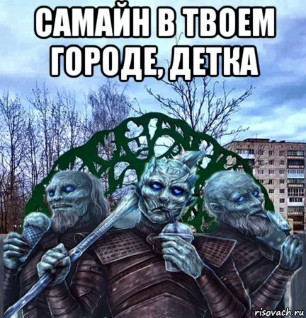 Лерика" Опубликовано 30 апреля, 2019 Автор Опубликовано 30 апреля, 2019 5 часов назад, Akon сказал(а) : Вместо мороженицы Это то самое, вы кстати совершенно правильно поняли, что это за "дерево". Это Король Ночи и Белые ходоки, из Игры престолов, как можно их было не узнать, Дима.