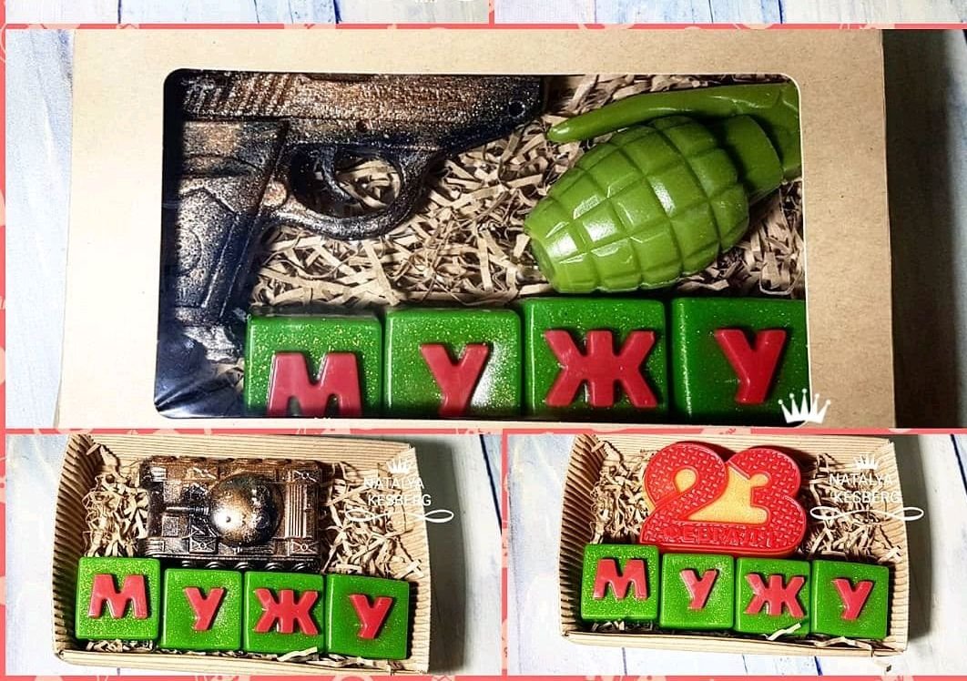 Наталья123 Опубликовано 18 января, 2019 Опубликовано 18 января, 2019 Приближается праздник 23 февраля! Спешите приобрести оригинальные, недорогие подарочки! Мыло ручной работы с мужской тематикой. Разнообразное кол-во ароматов, а также цветовая гамма. Цены: мыло по 100р шт. при упаковке в плёнку, при упаковке в коробку с декором цена увеличивается на 20-30р. Мыло с водорастворимой картинкой 130р при упаковке в плёнку. Из букв можно выложить любое слово, ц. 1 буквы 20р. Мыло танкист в танке 160р., упаковка в коробку или прозрачный пакет. Больше ассортимент страница в контакте, (Наталья Рубинская) https://vk.com/id361792075) т. или вайбер 89194978506