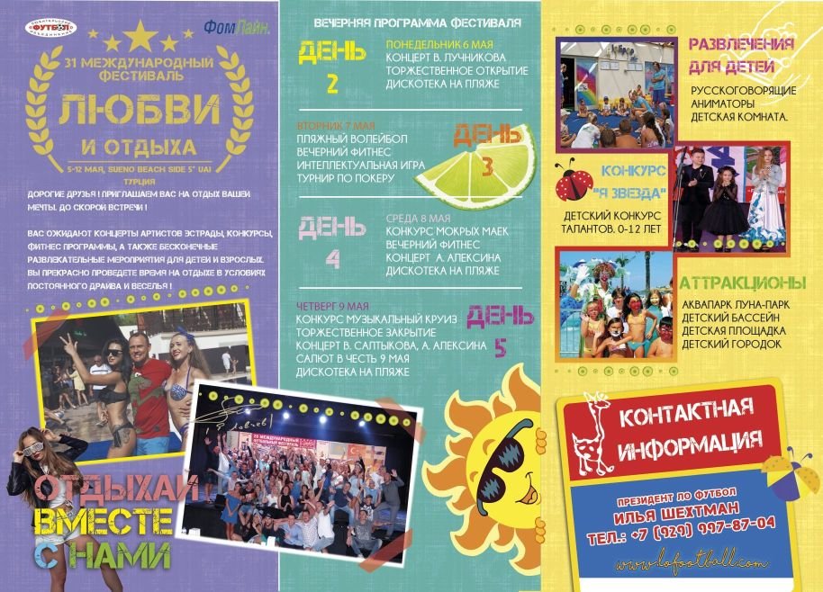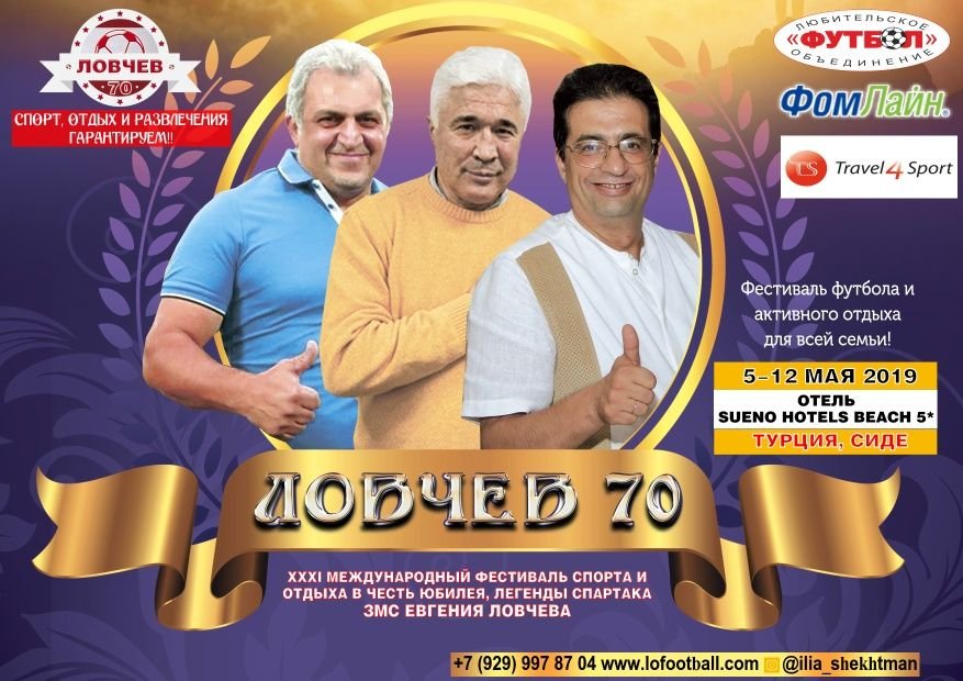 Daenur Опубликовано 24 февраля, 2019 Опубликовано 24 февраля, 2019 _______________________________________________________________________________ ВИДЕОПРИГЛАШЕНИЕ НА 31 МЕЖДУНАРОДНЫЙ ФЕСТИВАЛЬ ОТ ЕВГЕНИЯ ЛОВЧЕВА: https://www.youtube.com/watch?v=0wcTu6OdV1k&feature=youtu.be_______________________________________________________________________________ УВАЖАЕМЫЕ ДРУЗЬЯ! ЗДРАВСТВУЙТЕ! ПРИСОЕДИНЯЙТЕСЬ! ЛЕТИТ 700 ЧЕЛОВЕК! ОТЗЫВ О ФЕСТИВАЛЯХ ОТ И.РОДНИНОЙ и ПРИГЛАШЕНИЕ на ФЕСТИВАЛЬ ЛО ФУТБОЛhttps://youtu.be/0wcTu6OdV1k (видео на youtube.com) ПОЛОЖЕНИЕ О 31 МЕЖДУНАРОДНОМ ФЕСТИВАЛЕ В ЧЕСТЬ ЕВГЕНИЯ ЛОВЧЕВАhttp://lofootball.com/festival/05.05-12.05.2019/pologenie31_fest/ (pdf на нашем сайте) ЛЮБИТЕЛЬСКОЕ ОБЪЕДИНЕНИЕ ФУТБОЛ и FOAMLINE ПРЕДСТАВЛЯЮТ! ***** *****Наши телефоны: 8 (929) 997-87-04 (Илья), 8 (915) 248-67-42 (Максим), Т/ф: 8 (499) 767-54-26. Сайт: www.lofootball.com Почта: lofootbol@yandex.ru _________________________________________________________________________ ОРГКОМИТЕТ ФЕСТИВАЛЯ ПРИВЕТСТВУЕТ ВАС И ВЫРАЖАЕТ ВАМ СВОЁ ПОЧТЕНИЕ! Любительское Объединение Футбол, компании ФомЛайн и Золотой Стандарт приглашают Вас на 31 Международный Фестиваль Спорта и Отдыха в честь юбилея ЗМС, Легенды ФК Спартак Евгения ЛОВЧЕВА! Фестиваль состоится в Турции (Сиде) с 05 мая - 12 мая 2019 года, отель SUENO Hotels Beach Side 5* Ultra All Inclusive. Спорт, отдых, развлечения и хорошую погоду ГАРАНТИРУЕМ! Удачи и до встречи! Фестивальный Ролик: https://youtu.be/Pt1U6dMogP0 (видео на youtube.com) В ПРОГРАММЕ ФЕСТИВАЛЯ: Футбольный Турнир 8х8 в ЧЕТЫРЁХ возрастных категориях (18+, 34+, 42+, 50+): выход на регламент (http://lofootball.com/festival/05.05-12.05.2019/about/ ) Творческий вечер Евгения Ловчева "70 лет - как один миг!", концерты Артистов Эстрады: Виктор САЛТЫКОВ (певец), Андрей АЛЕКСИН (певец и композитор), Владимир ЛУЧНИКОВ (экс солист "поднимаем Руки Вверх" и "Турбомода"), Степан МЕНЬЩИКОВ (шоумен), XI Песенный Конкурс "Музыкальный Круиз с ЛО Футбол"(победитель едет в Октябре 2019 на Фестиваль бесплатно), ХIII Турнир по покеру, Любительский Теннисный турнир (одиночный и парный разряд), III Международный Конкурс Мокрых Маек, Международный турнир по Пляжному Волейболу, III Международный Турнир по Шахматам, VII Интеллектуальная Игра (ведущий - обладатель Хрустальной Совы - Владимир АНТОХИН) и другие развлечения... ПРЕЗЕНТАЦИЯ 31 МЕЖДУНАРОДНОГО ФЕСТИВАЛЯ СПОРТА И ОТДЫХА В ЧЕСТЬ ЮБИЛЕЯ ЗМС ЕВГЕНИЯ ЛОВЧЕВА http://lofootball.com/festival/05.05-12.05.2019/prezentation2019/ ______________________________________________________________________________ *Страница Фестивалей ЛО ФУТБОЛ: http://lofootball.com/festival/ * Все Фотографии Международных Фестивалей: https://yadi.sk/d/MmvXoPFIm65PDw *Все Видеофильмы Фестивалей: ВИДЕОФИЛЬМЫ НА YOUTUBE (нажми)https://www.youtube.com/results?sp=SADqAwA%253D&q=%D1%84%D0%B5%D1%81%D1%82%D0%B8%D0%B2%D0%B0%D0%BB%D0%B8+%D0%BB%D0%BE+%D1%84%D1%83%D1%82%D0%B1%D0%BE%D0%BB *Страница 31 Международного Фестиваля Спорта и Отдыха: http://lofootball.com/festival/05.05-12.05.2019/ ________________________________________________________________________________*Отзывы от Участников Фестивалей https://www.youtube.com/watch?v=smG5DEJ7LmU https://msls.ru/sueno VIP ГОСТИ и ФУТБОЛИСТЫ: Евгений ЛОВЧЕВ, Ирина РОДНИНА, Сергей ГОРЛУКОВИЧ, Хорен ОГАНЕСЯН, Анзор КАВАЗАШВИЛИ, Аркадий БЕЛЫЙ, Евгений МИЛЕШКИН, Дмитрий ХЛЕСТОВ, Альберт САРКИСЯН, Олег ДЕНИСОВ, Александр ВЕРИЖНИКОВ, Оксана ПУШКИНА, Ахрик ЦВЕЙБА, Дмитрий КУЗНЕЦОВ, Андрей МОВСЕСЬЯН, Алексей ДВОРЦОВ, Андрей НОВГОРОДОВ и многие другие... Полный список ветеранов и ВИП гостей смотрите на сайте (дополняется): http://lofootball.com/festival/05.05-12.05.2019/vip31/ До встречи на 31 Фестивале Спорта и Отдыха от ЛО Футбол! ______________________________________________________________________________ ВИДЕОПРЕЗЕНТАЦИЯ ОТЕЛЯ SUENO HOTELS BEACH SIDE 5* https://www.youtube.com/watch?v=MOQZq2AxBEI&feature=youtu.be (мобильная версия не поддерживается..смотреть в полной версии сайта) ________________________