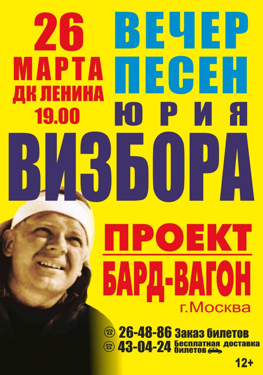 КУЗЬМИ4 Опубликовано 16 марта, 2019 Автор Опубликовано 16 марта, 2019 .Это будет тёплый вечер друзей с известными песнями, слайдами и видеофильмом о творчестве барда, поэта-песенника, киноактёра, драматурга, журналиста Юрия Визбора. Не пропустите этот концерт, собирайте друзей и вместе с артистами попоёте любимые песни автора