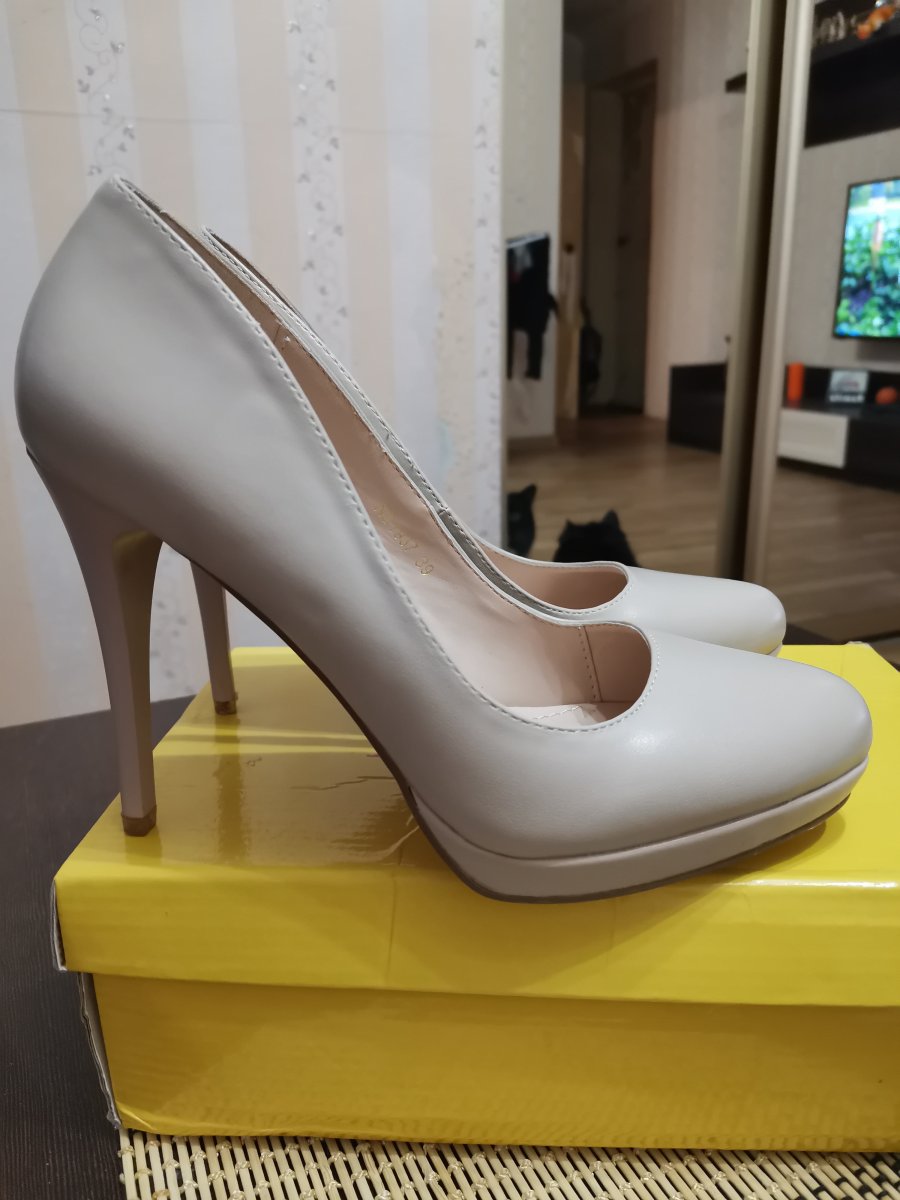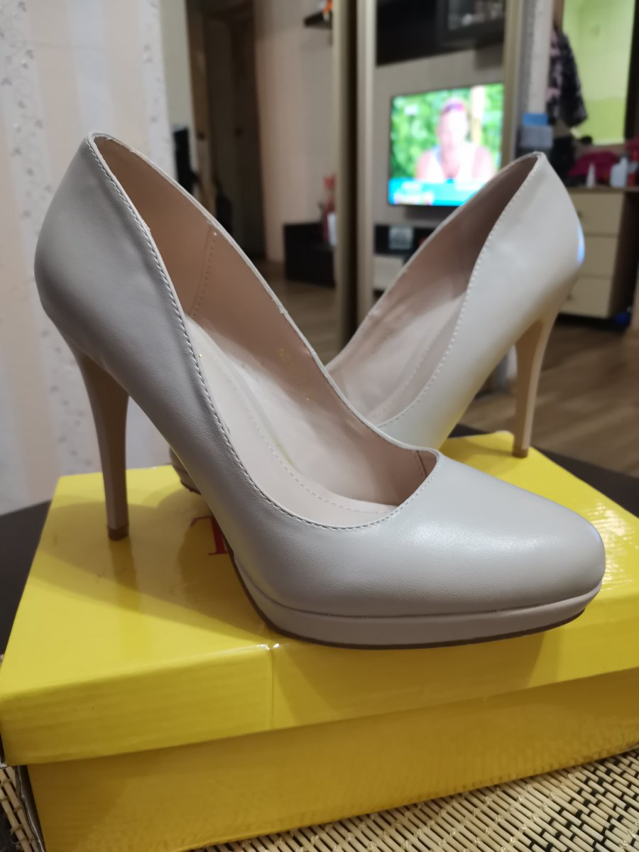 Феличита Опубликовано 27 ноября, 2019 Опубликовано 27 ноября, 2019 Туфли б/у 1раз,в отличном состоянии,бежевый цвет. Высота платформы 1 см, высота каблука 10 см. Цена 1000руб, 89822529930