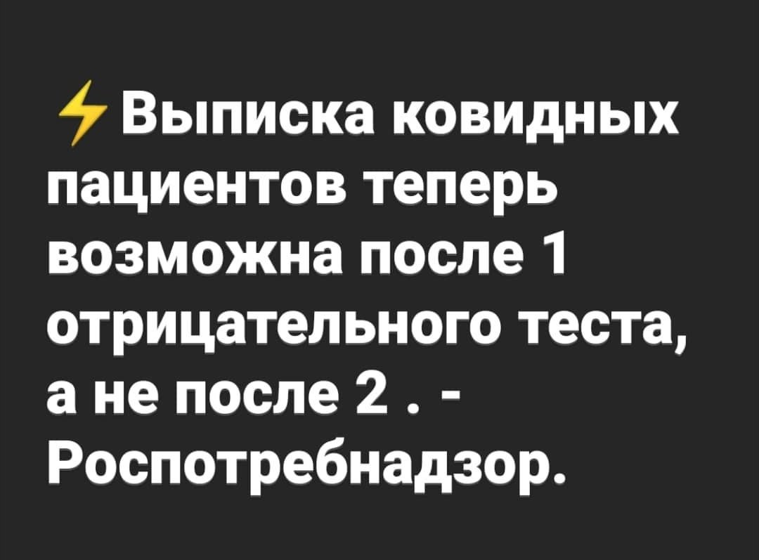 В Калининграде из больнички выписывают только после трёх отрицательных. Походу, везде по-разному лечат.
