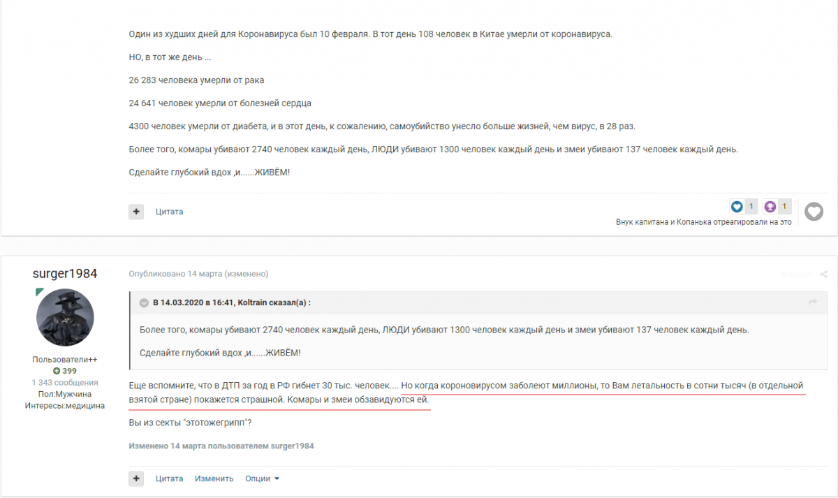 И где же наш ведущий диванный вирусолог этой весны на Берфоруме, господин Колтрейн (простите за мой английский). Что он скажет про смертность от змеек и комариков СЕЙЧАС? ?