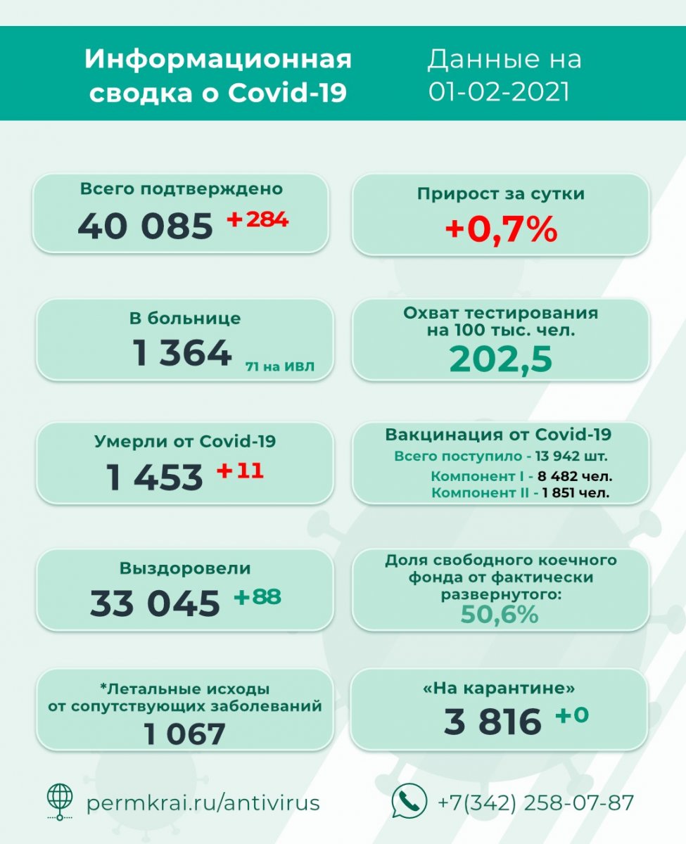 В Пермском крае на 10 часов утра 1 февраля за последние сутки: