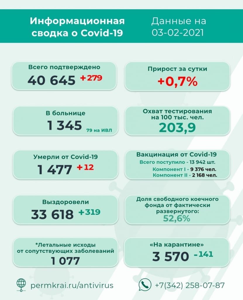 Пермском крае на 10 часов утра 3 февраля за последние сутки: