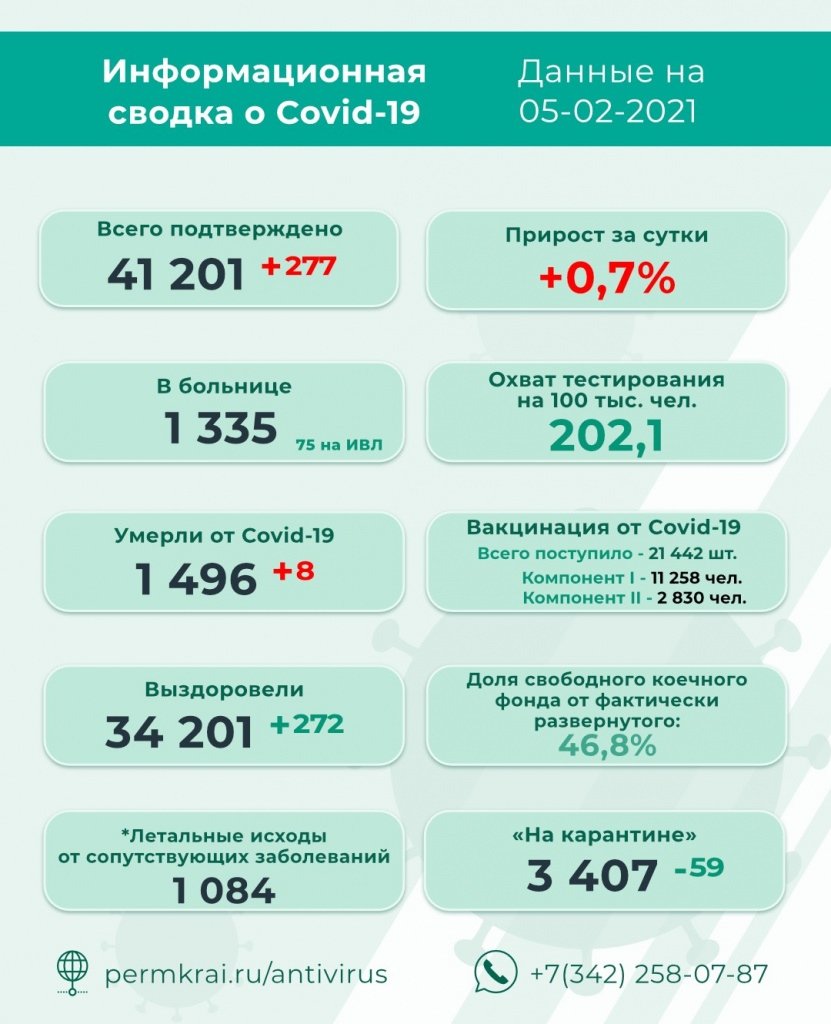 В Пермском крае на 10 часов утра 5 февраля за последние сутки: