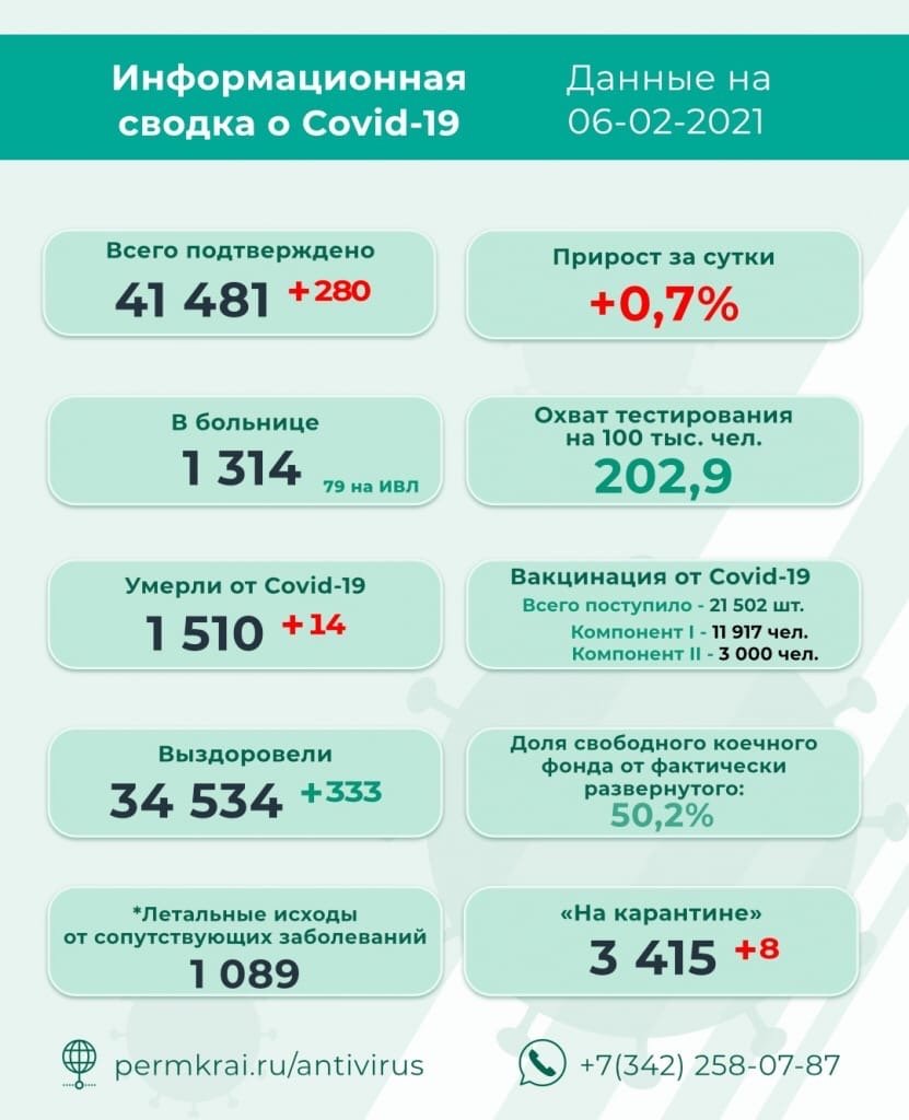 В Пермском крае на 10 часов утра 6 февраля за последние сутки: