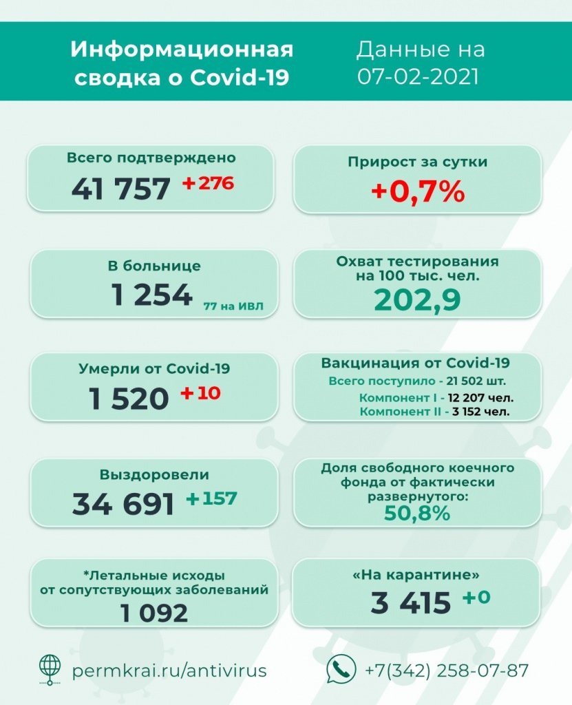 В Пермском крае на 10 часов утра 7 февраля за последние сутки: