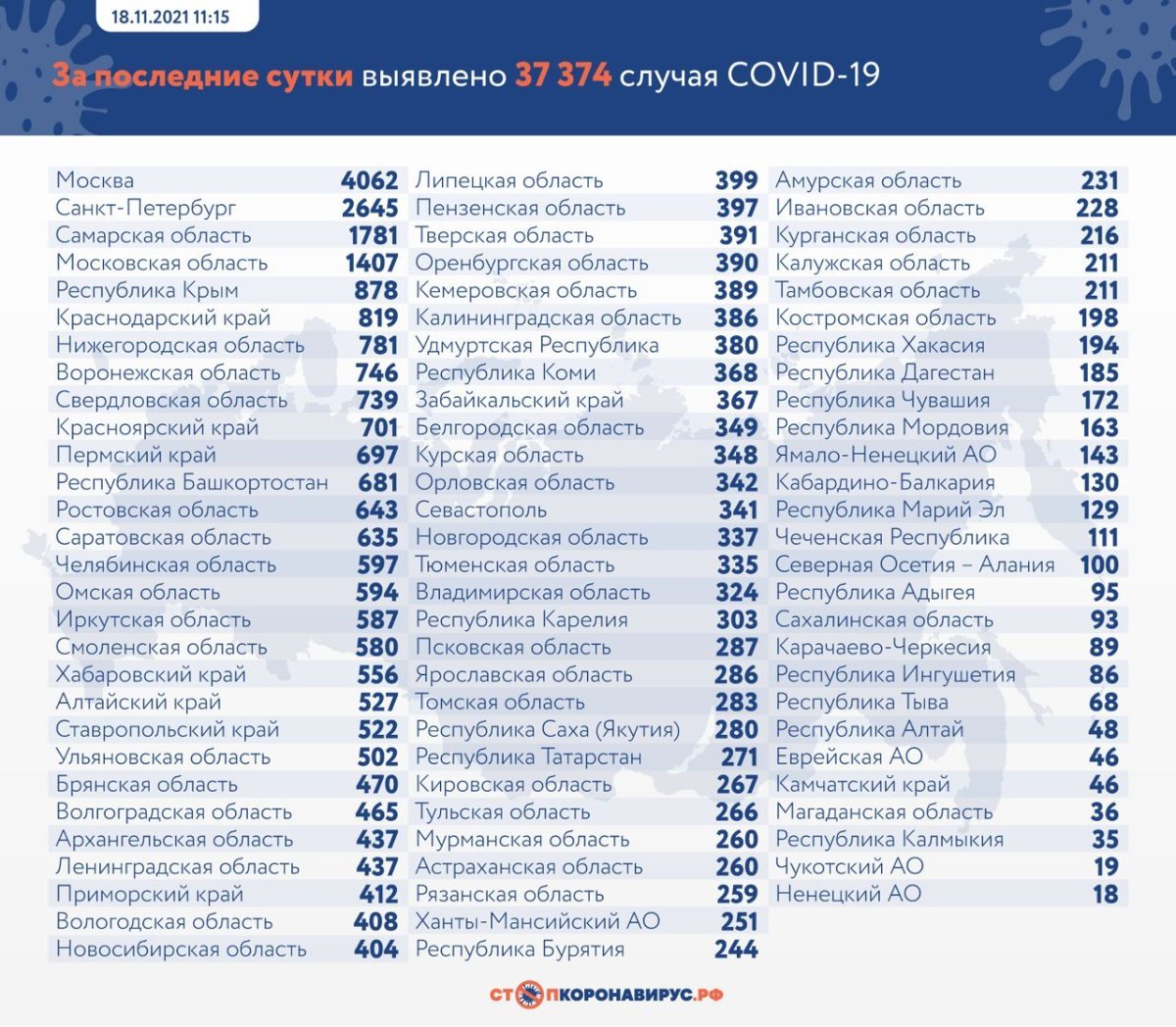 Также за сутки зафиксирован 1 251 летальный исход. За весь период в России от коронавируса скончалось 260 335 человек.