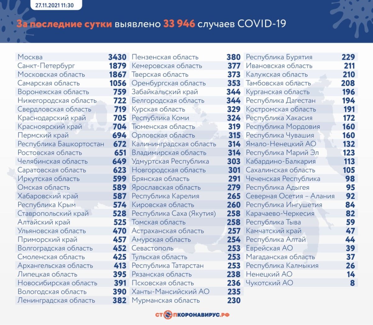 Также за сутки зафиксировано 1 209 летальных исходов. За весь период в России от коронавируса скончалось 273 964 человека.
