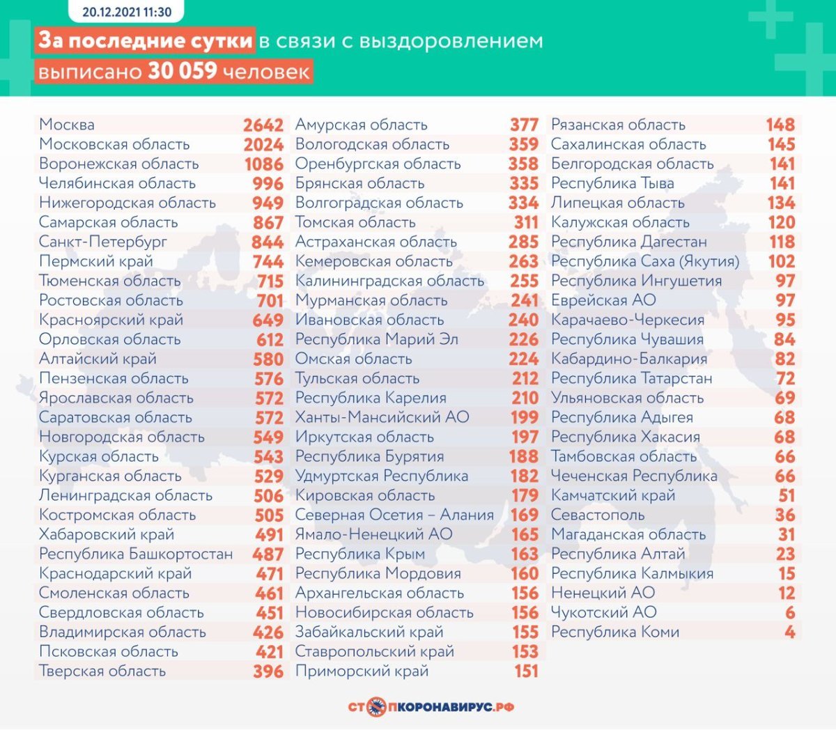 За последние сутки в России в связи с выздоровлением от коронавирусной инфекции выписано 30 059 человек❗