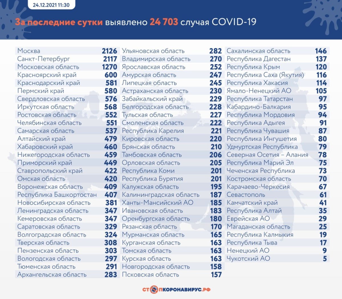 За последние сутки в России выявлено 24 703 случая COVID-19 в 85 регионах, из них 1 790 (7,2%) — активно у контактных лиц без клинических проявлений болезни❗️