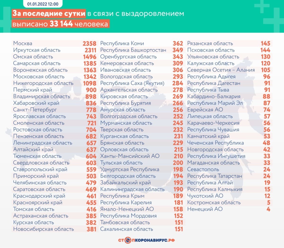 За последние сутки в России в связи с выздоровлением от коронавирусной инфекции выписано 33 144 человека❗