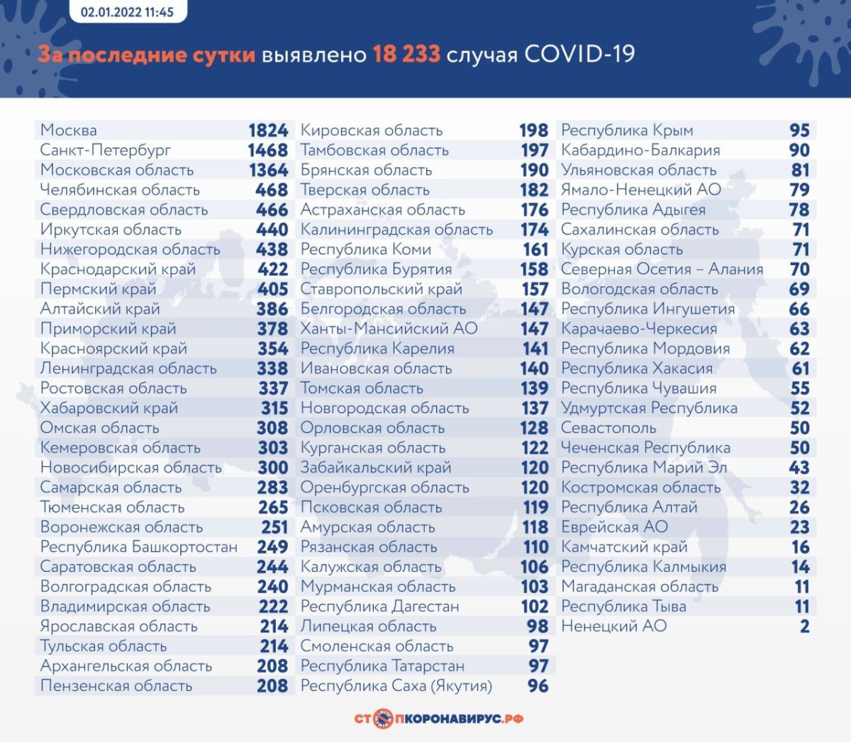 За последние сутки в России выявлено 18 233 случая COVID-19 в 84 регионах, из них 1 591 (8,7%) — активно у контактных лиц без клинических проявлений болезни❗️