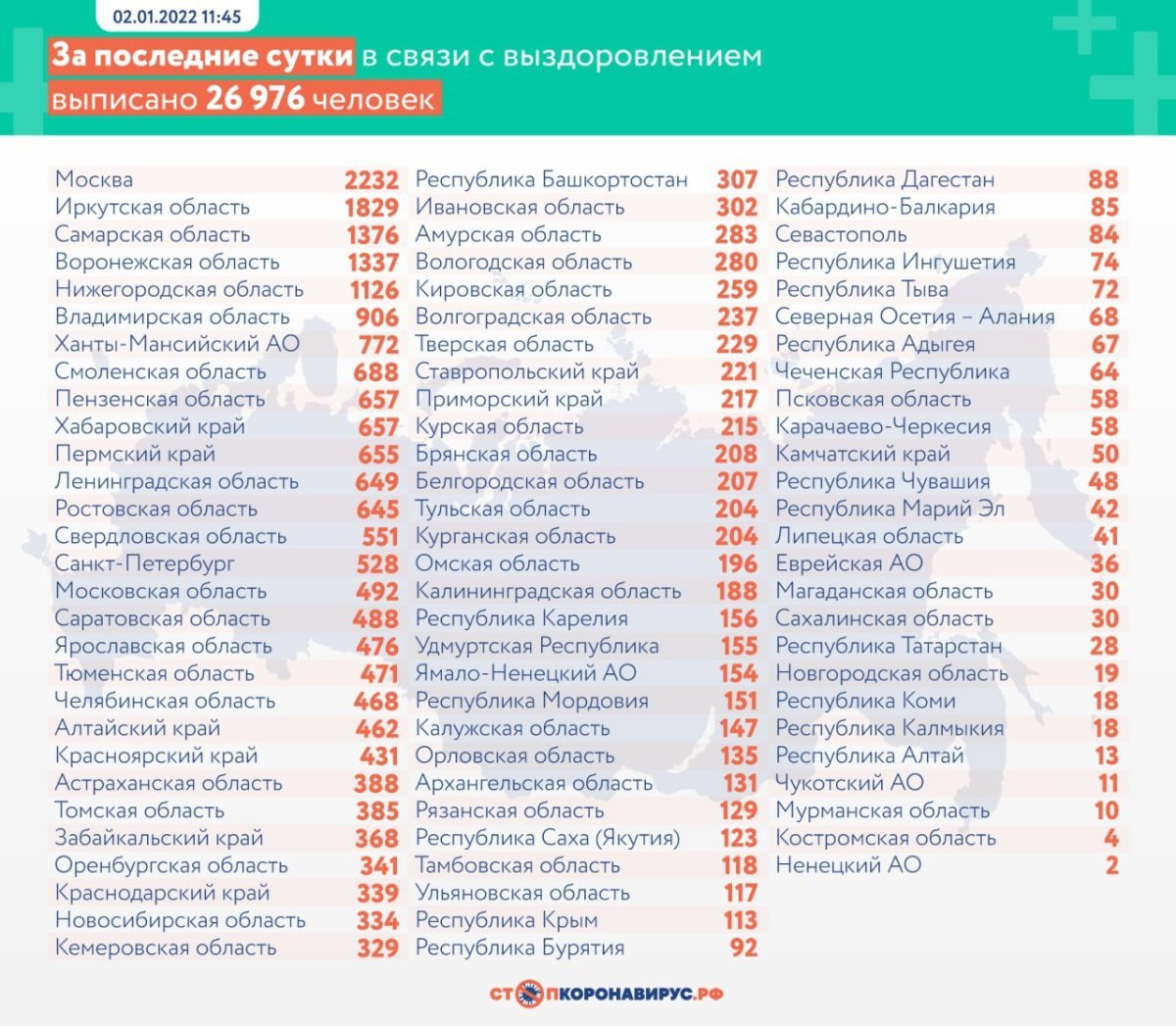 За последние сутки в России в связи с выздоровлением от коронавирусной инфекции выписано 26 976 человек❗