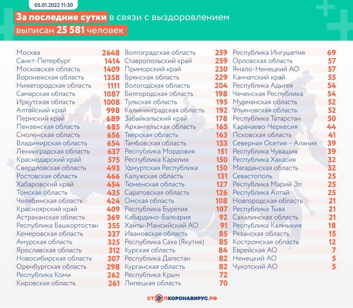 За последние сутки в России в связи с выздоровлением от коронавирусной инфекции выписан 25 581 человек❗
