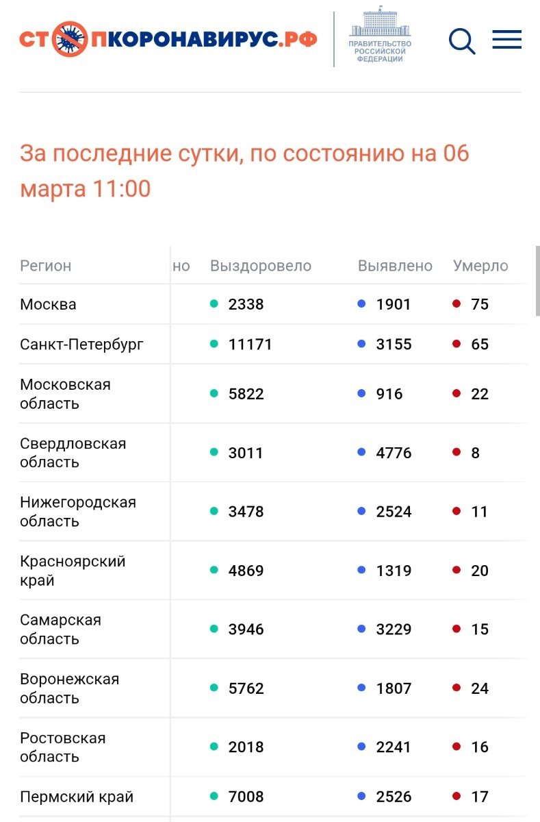 ? выписано в связи с выздоровлением 149 060 человек, на 4,3% меньше по сравнению с 5 марта