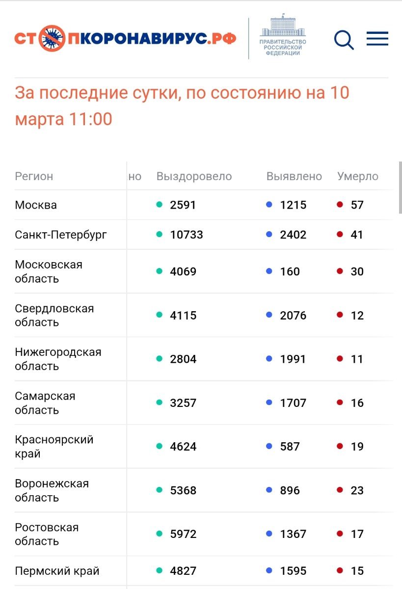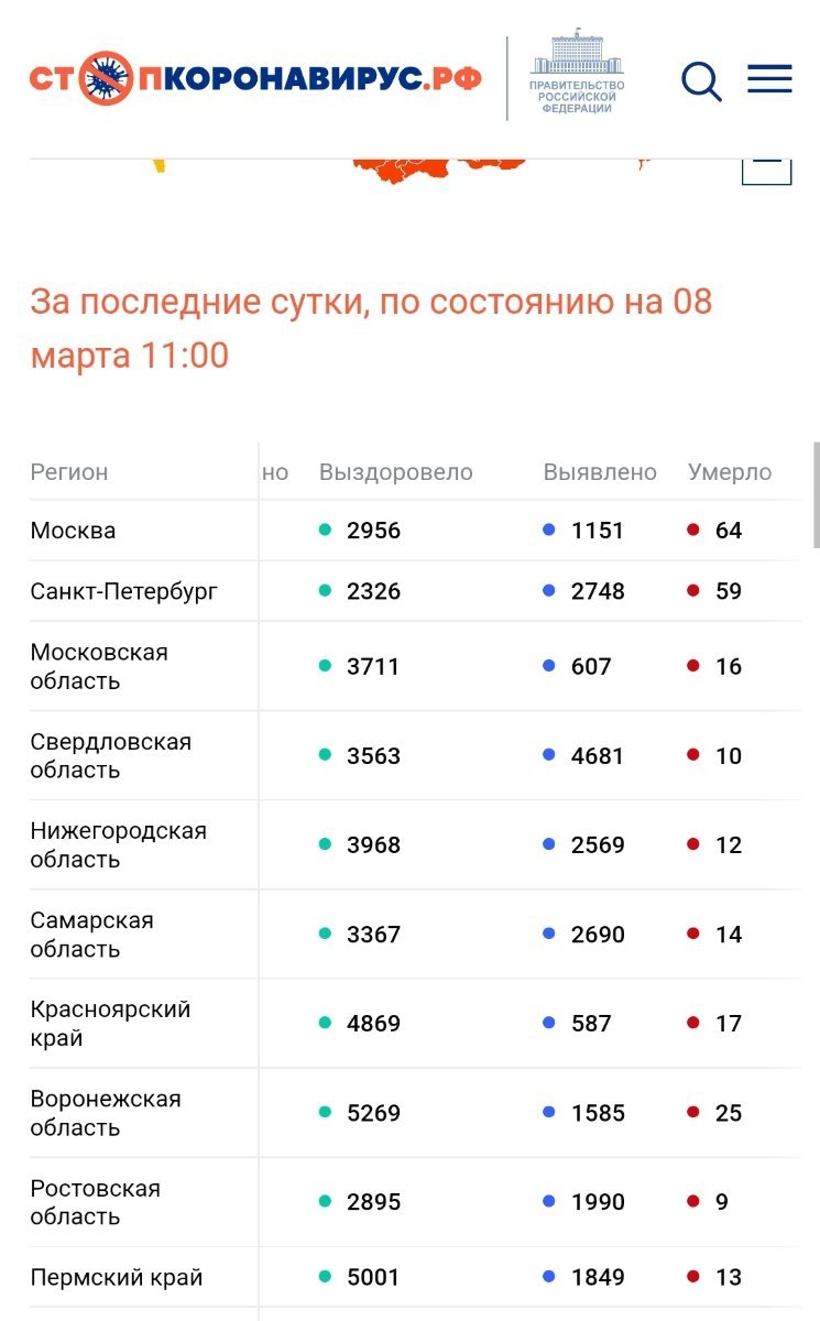 ? выписано в связи с выздоровлением 92 732 человека, на 17% меньше по сравнению с 8 марта