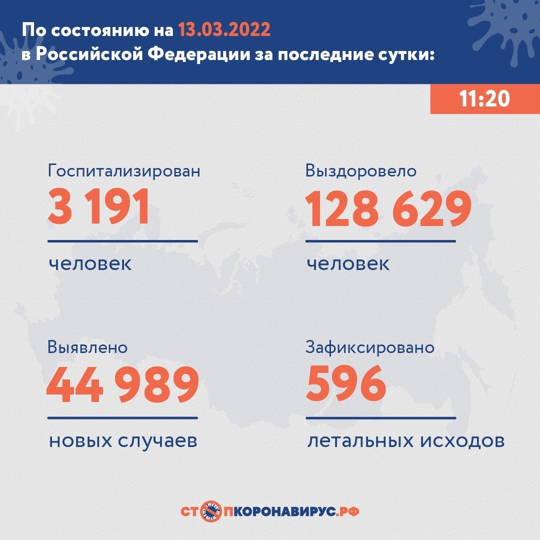 По данным Роспотребнадзора, по результатам секвенирования 3 677 проб с 3 по 10 марта 93,1% образцов относятся к штамму «омикрон», 1,3% — к штамму «дельта», ещё 5,5 % — к другим вариантам COVID-19.