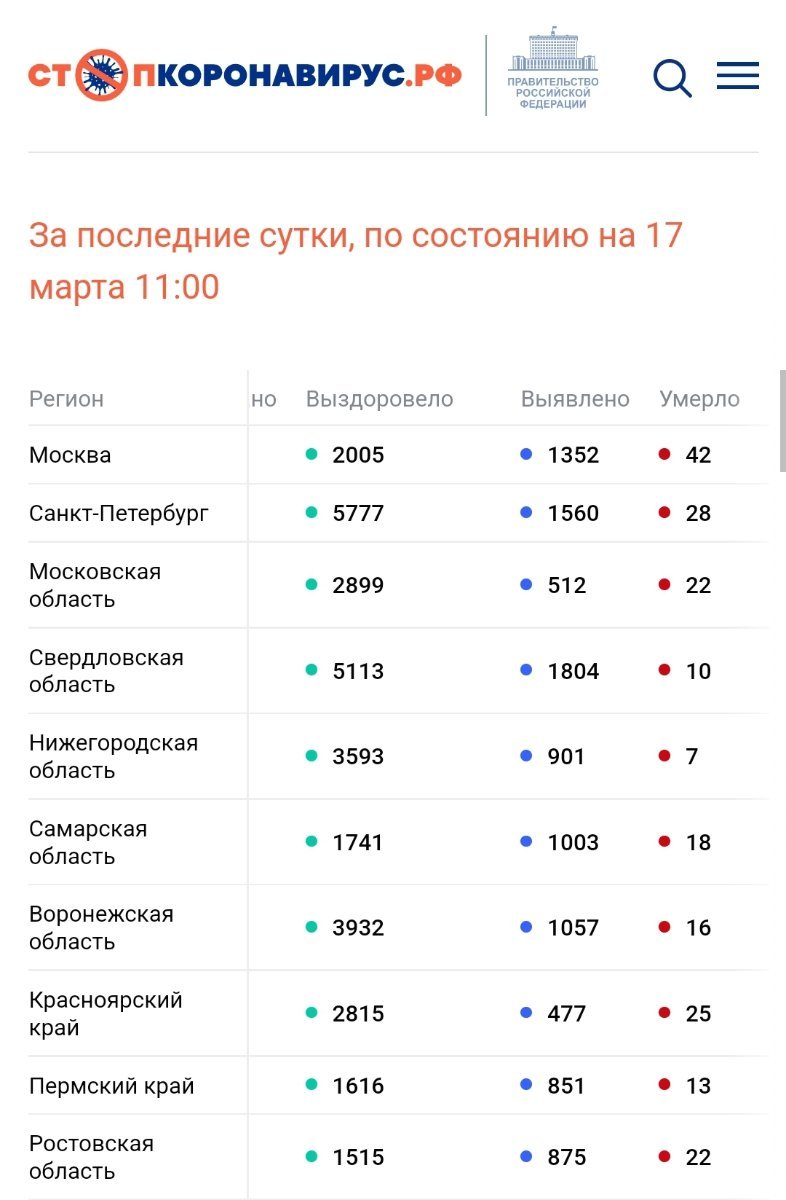 ? выписано в связи с выздоровлением 105 064 человека, на 6,7% меньше по сравнению с 17 марта